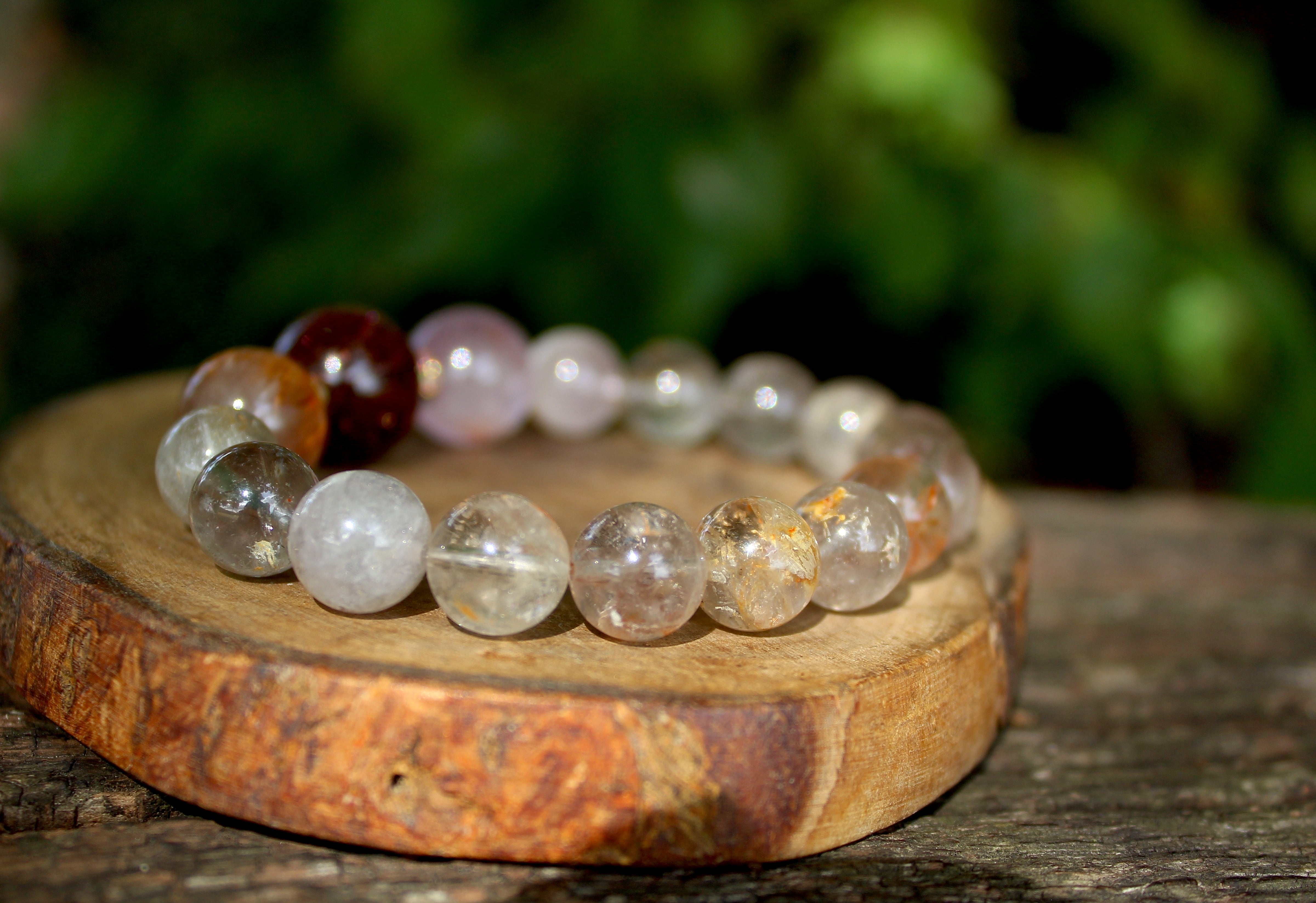 23種類以上の複合鉱物が含まれていることで、それぞれのビーズがそれぞれに違った表情をしています。どれも美しくクオリティの高いオーラライトです。