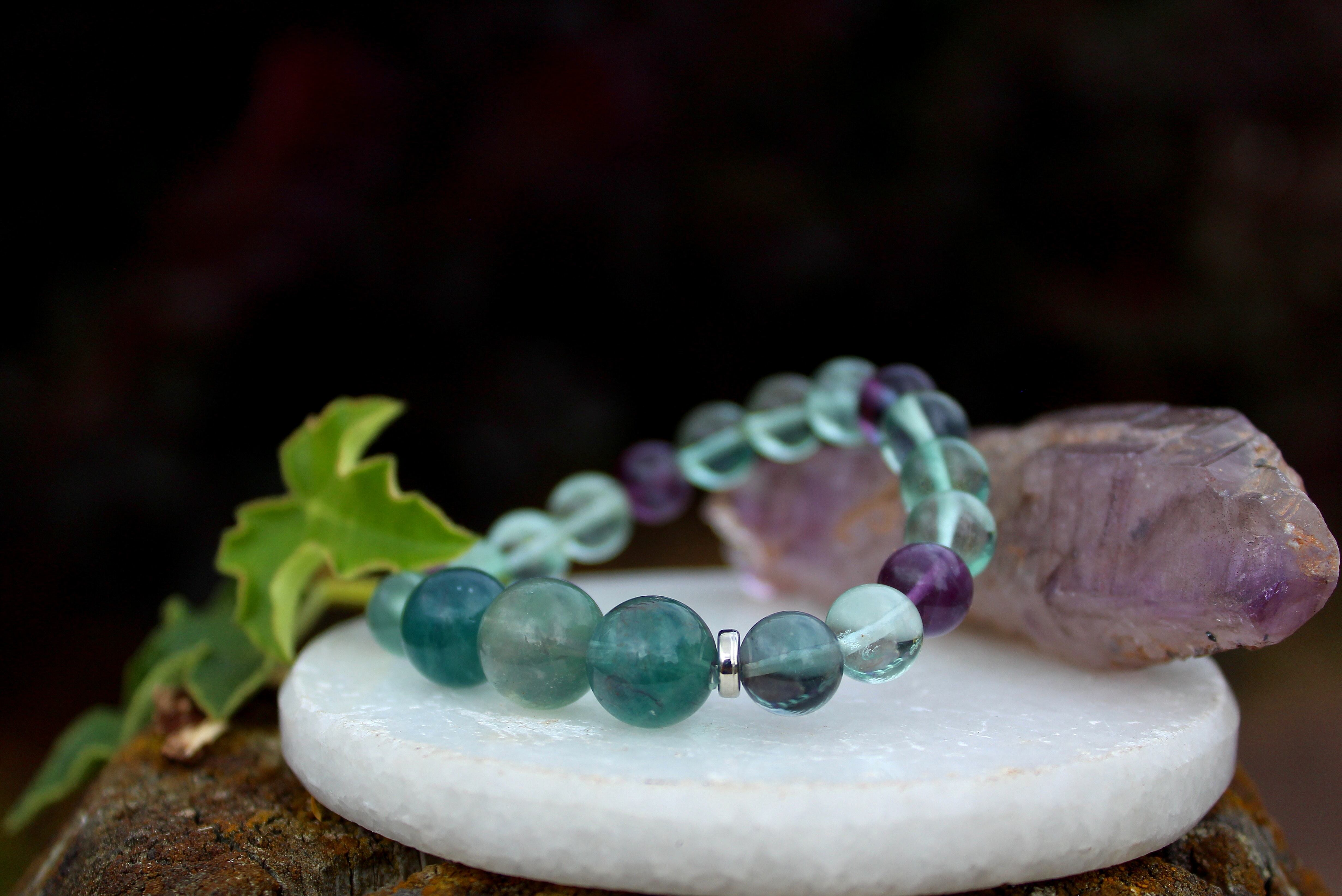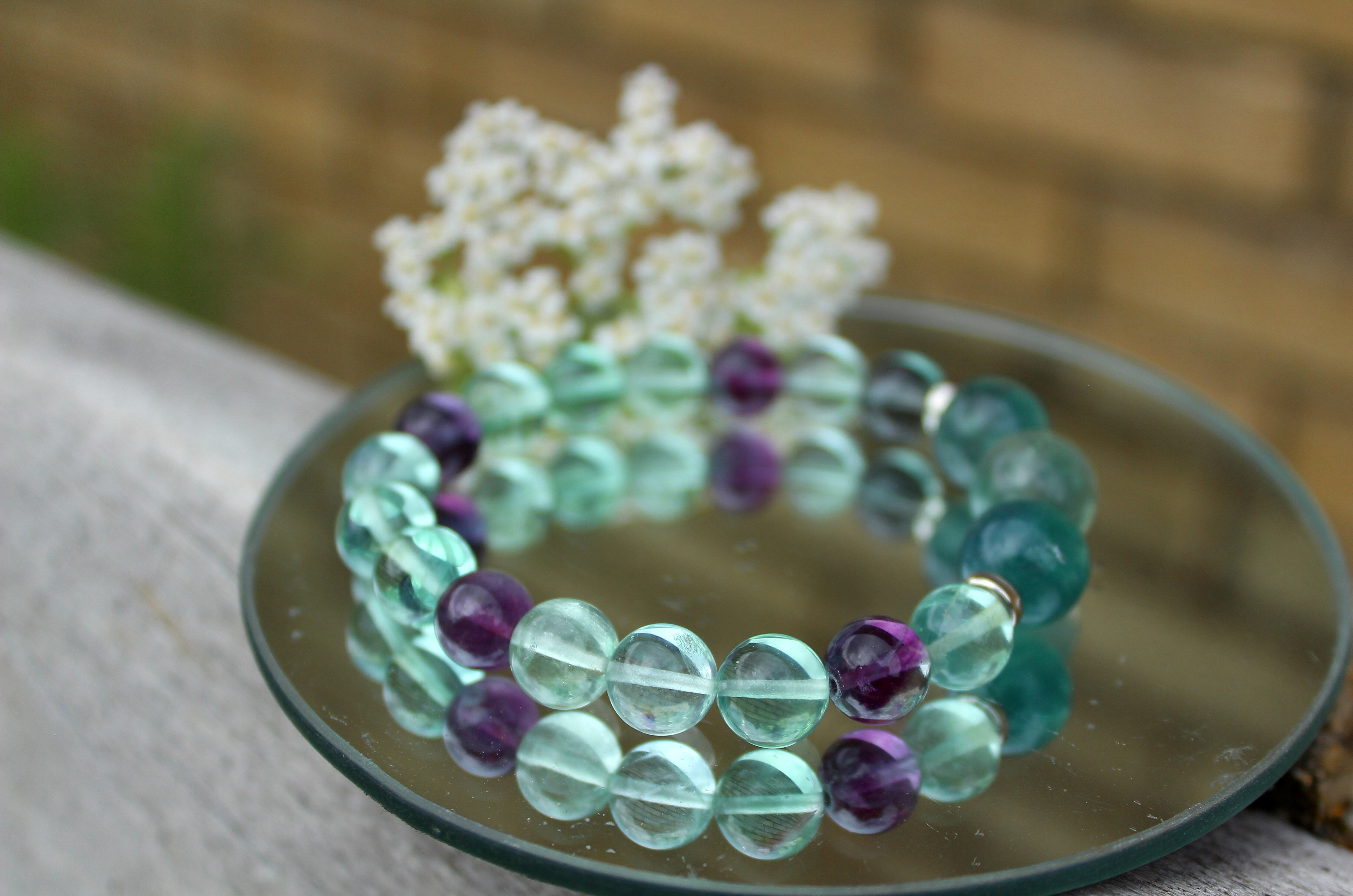 ブルーとグリーン、パープルのコンビネーションが非常に美しい高品質のフローライトブレスレットです。