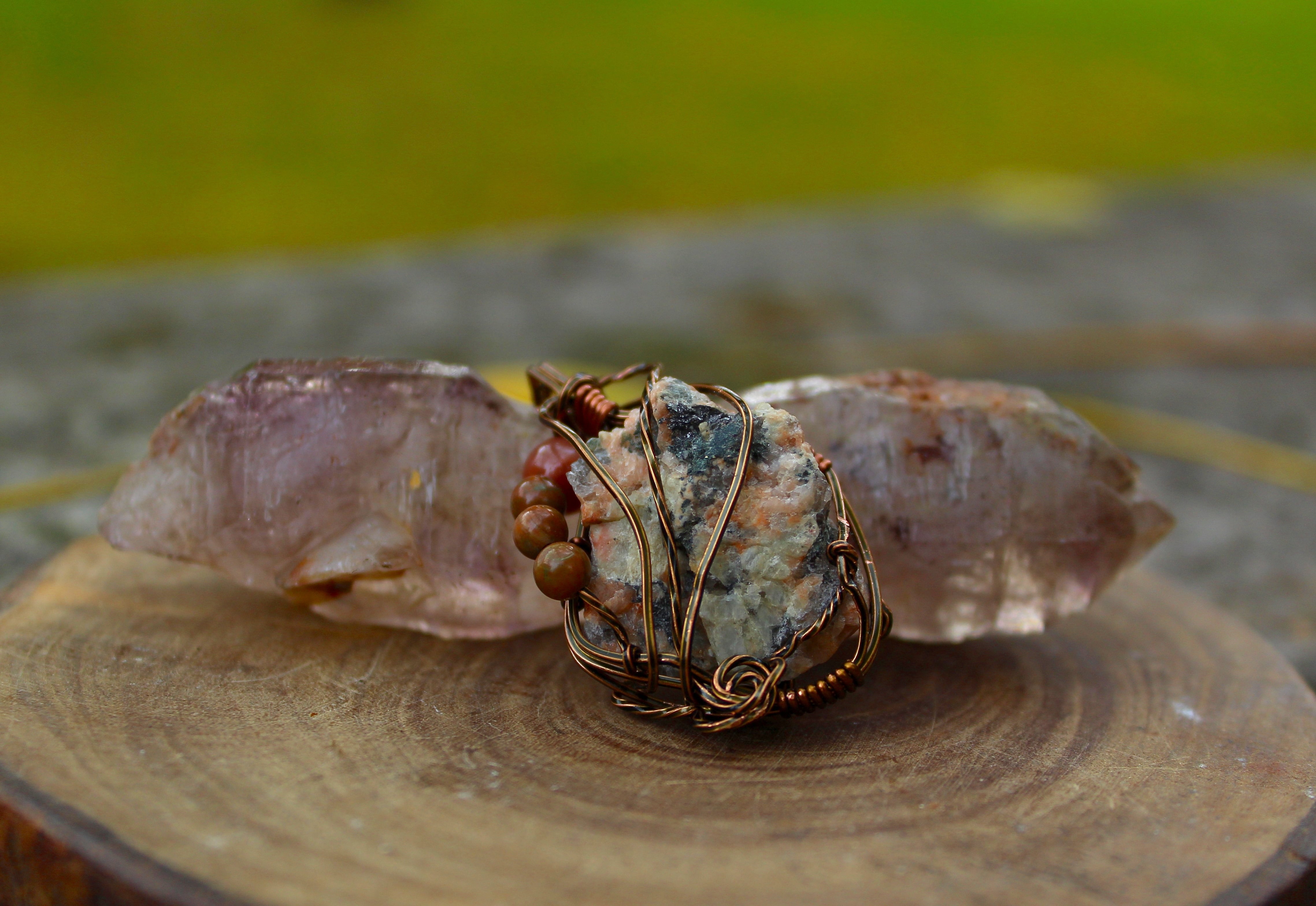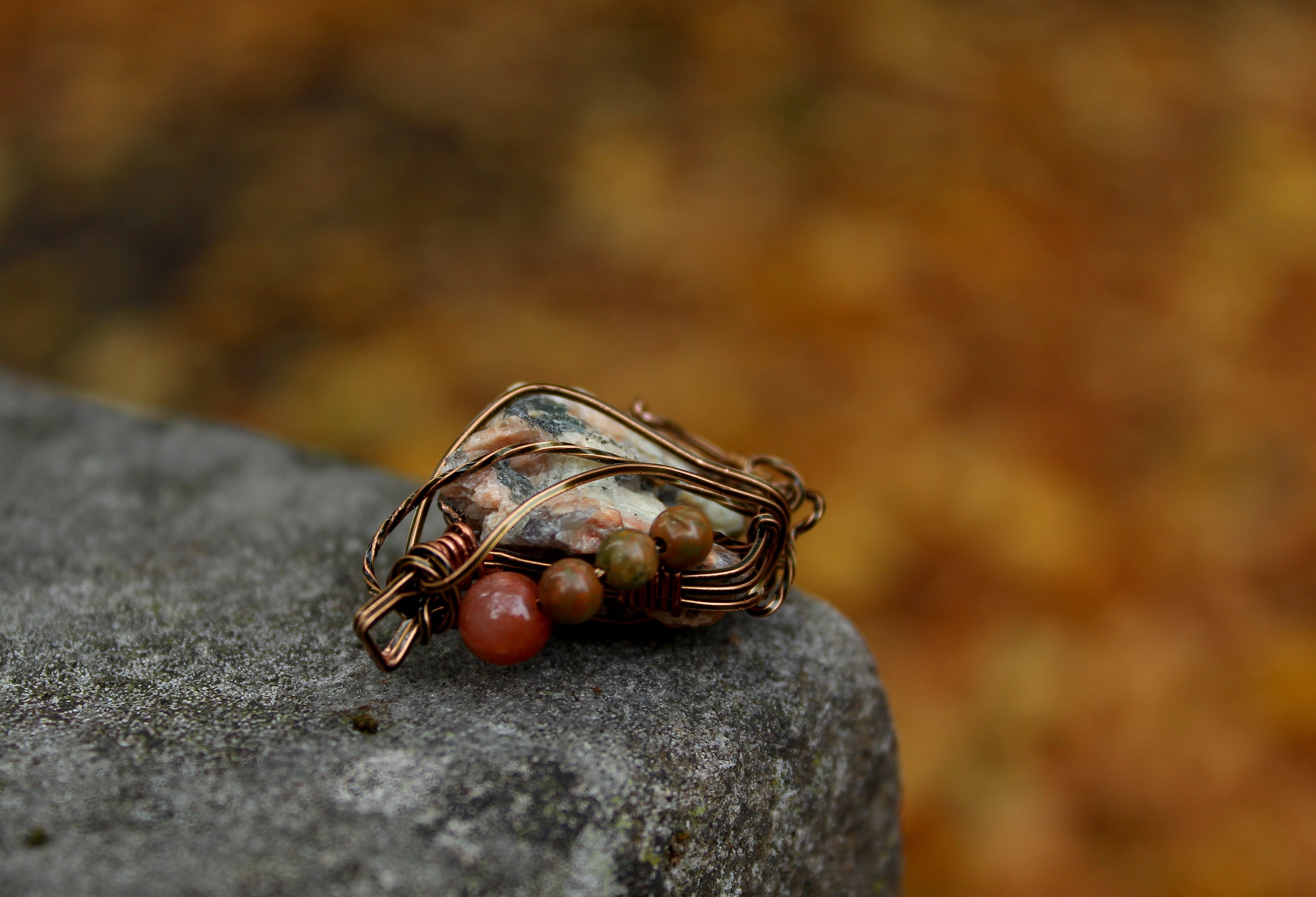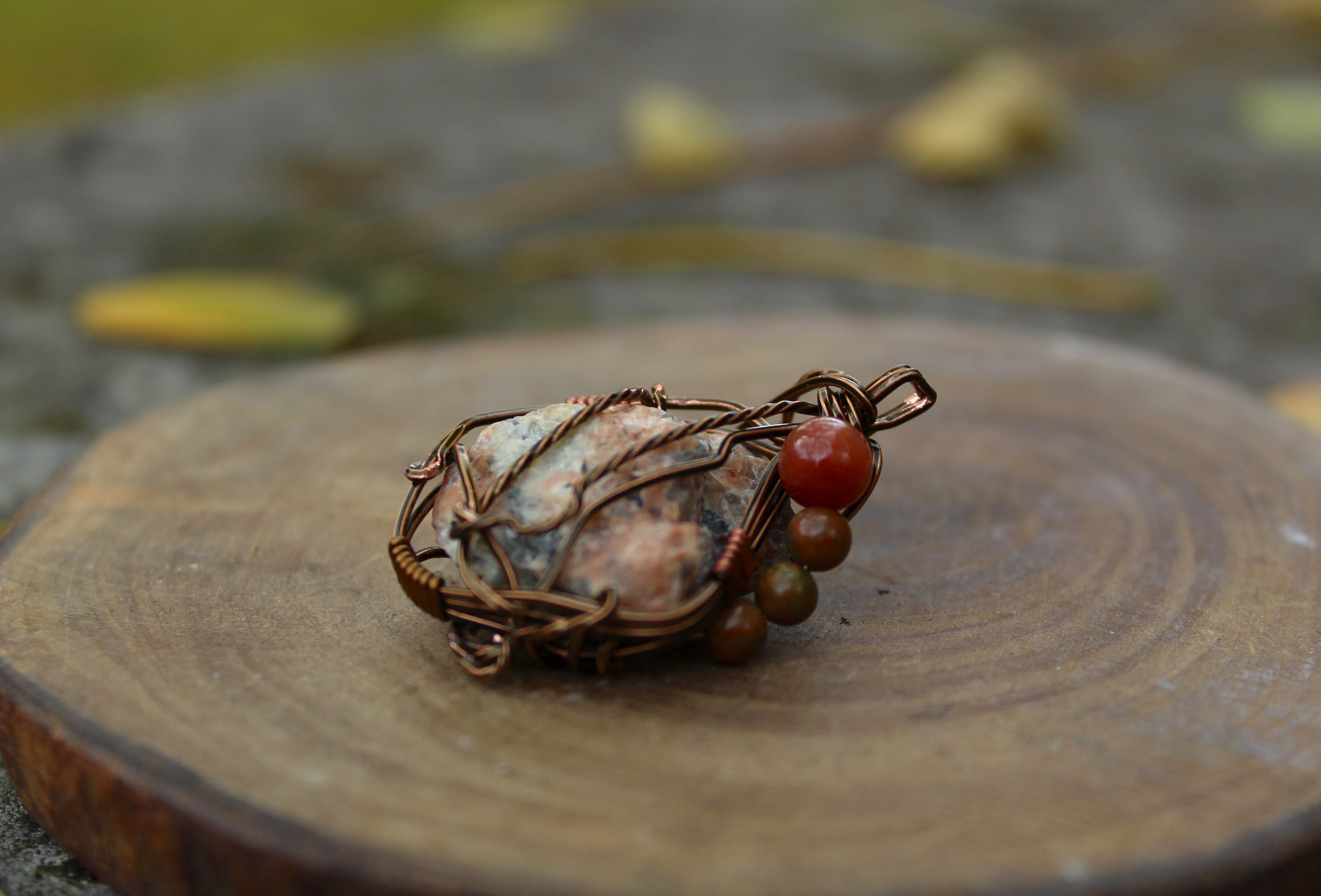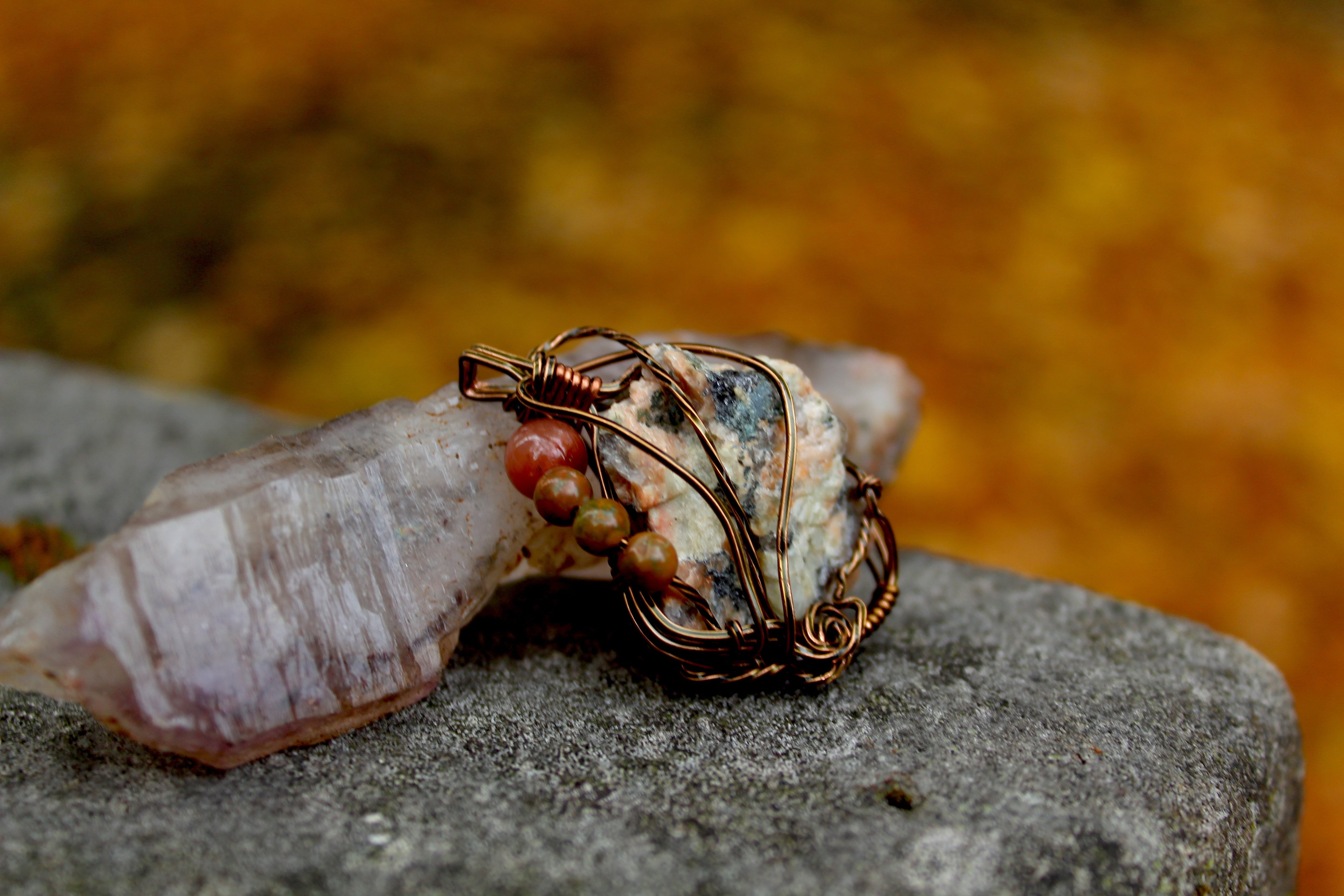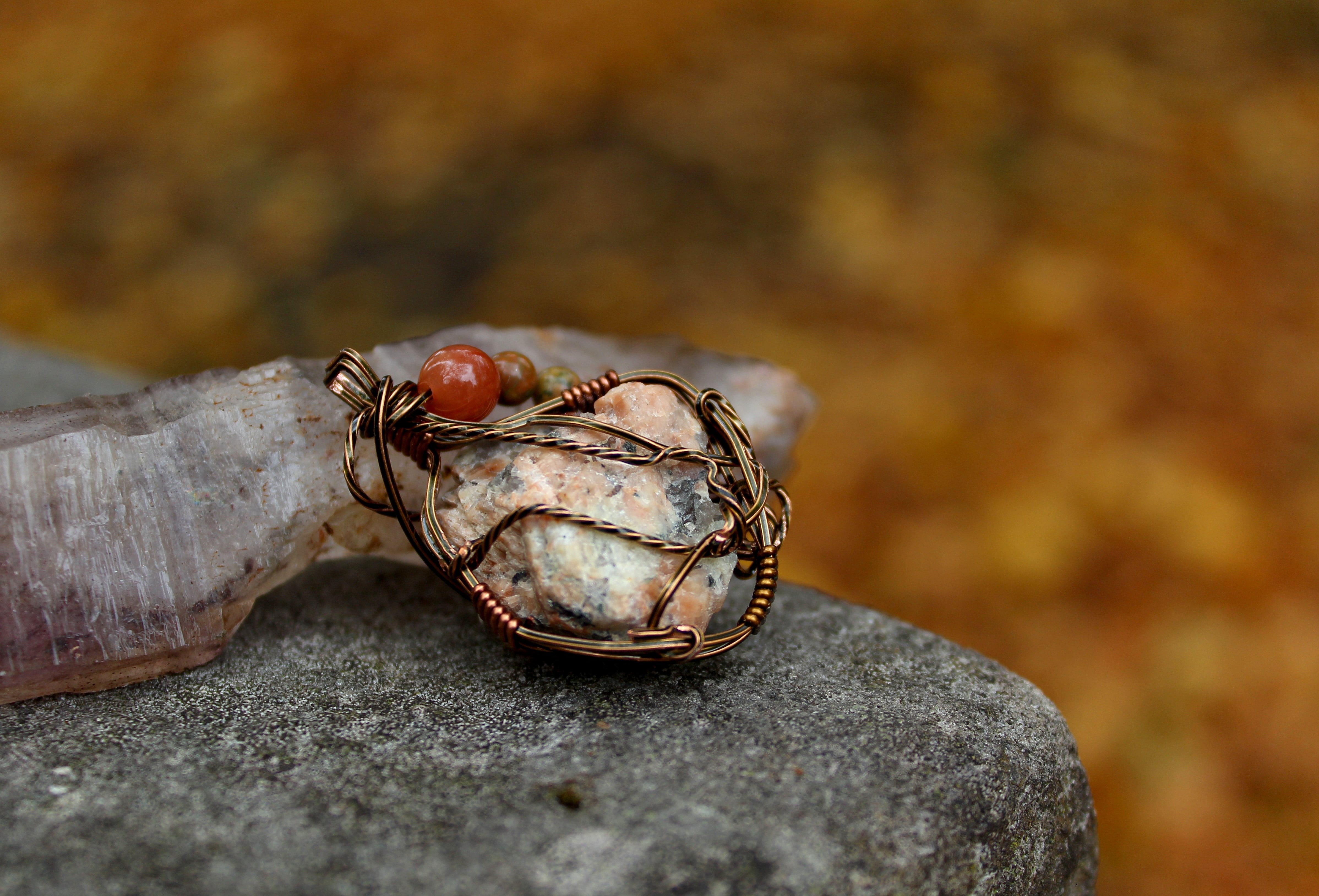 自然な風合いを生かして、アンティークゴールドのワイヤーで巻きました。