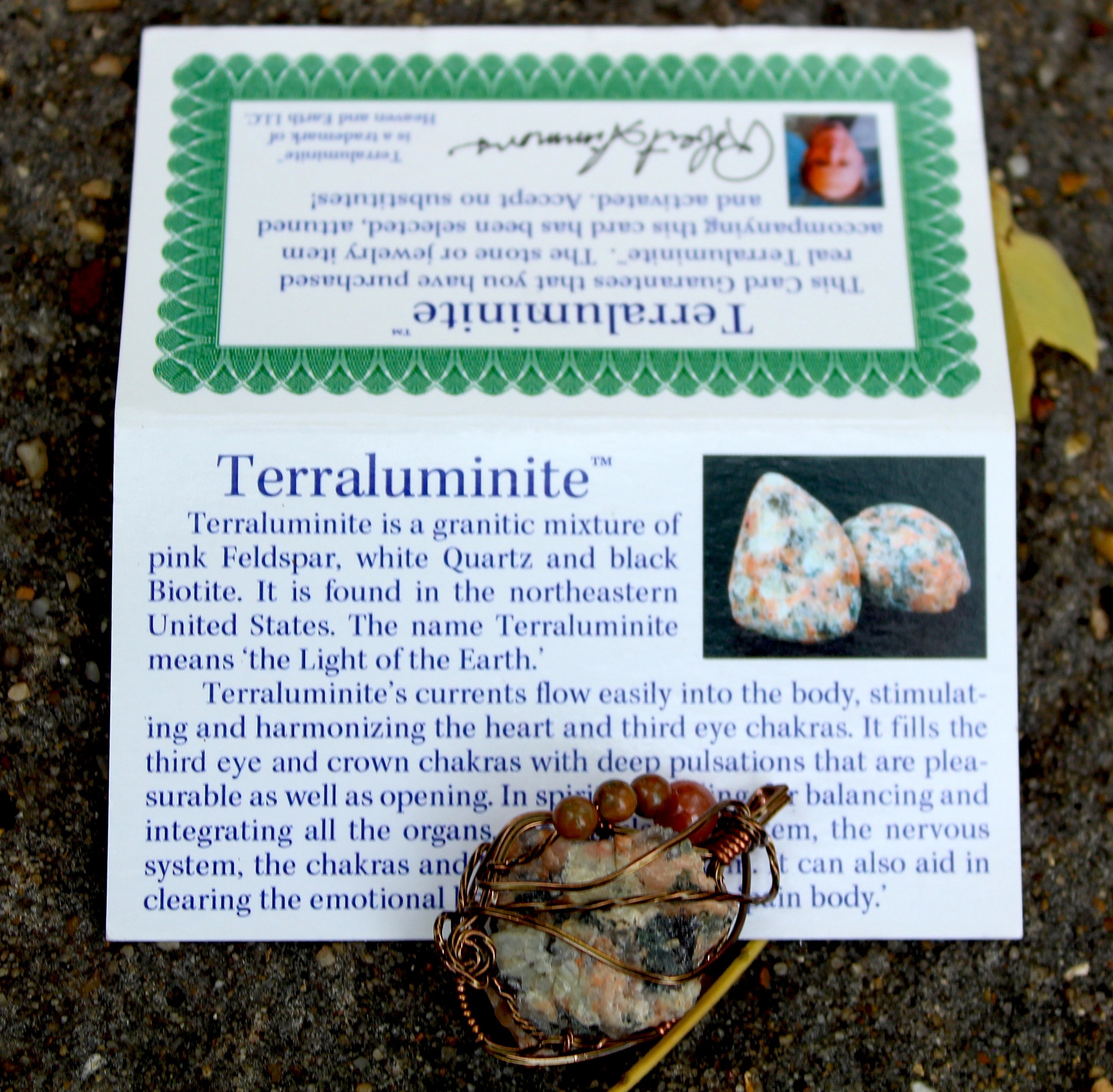 テラルミナイトの波動の流れは、肉体で容易に感じることが出来るでしょう。ハートチャクラとサードアイチャクラを刺激して、調和させます。さらに、サードアイチャクラとクラウンチャクラは深く繋がっており、それらが開かれてゆくことに喜びを感じるでしょう。感情体を癒し、内なる緊張を手放します。すべての臓器を統合しバランスを取り、循環器、神経系統、チャクラとメリディアンシステムに作用します。さらに、感情的な肉体と肉体の痛みを癒すことができます。テラルミナイトは、ハートが交流することによって生まれるイメージや言語を活性化します。ハートチャクラとクラウンチャクラが一つにつながり働くときに、感じる喜びの扉を開きます。テラルミナイトは、ローゾフィアやすべての」種類のアゼツライトと調和します。