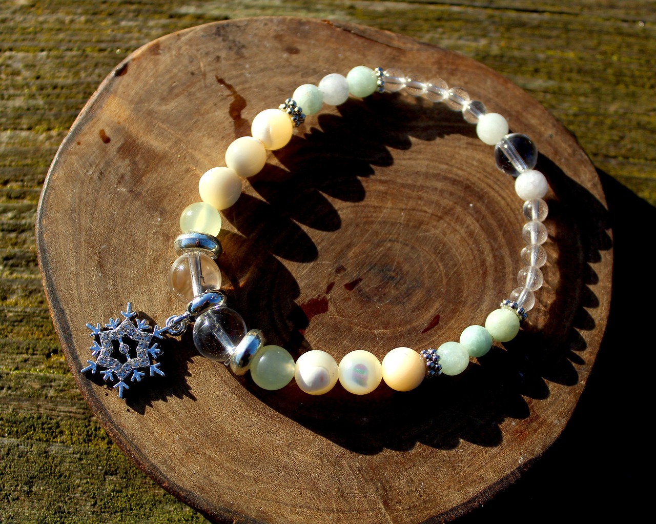 水晶の間に、シルバーの雪の結晶のパーツ。