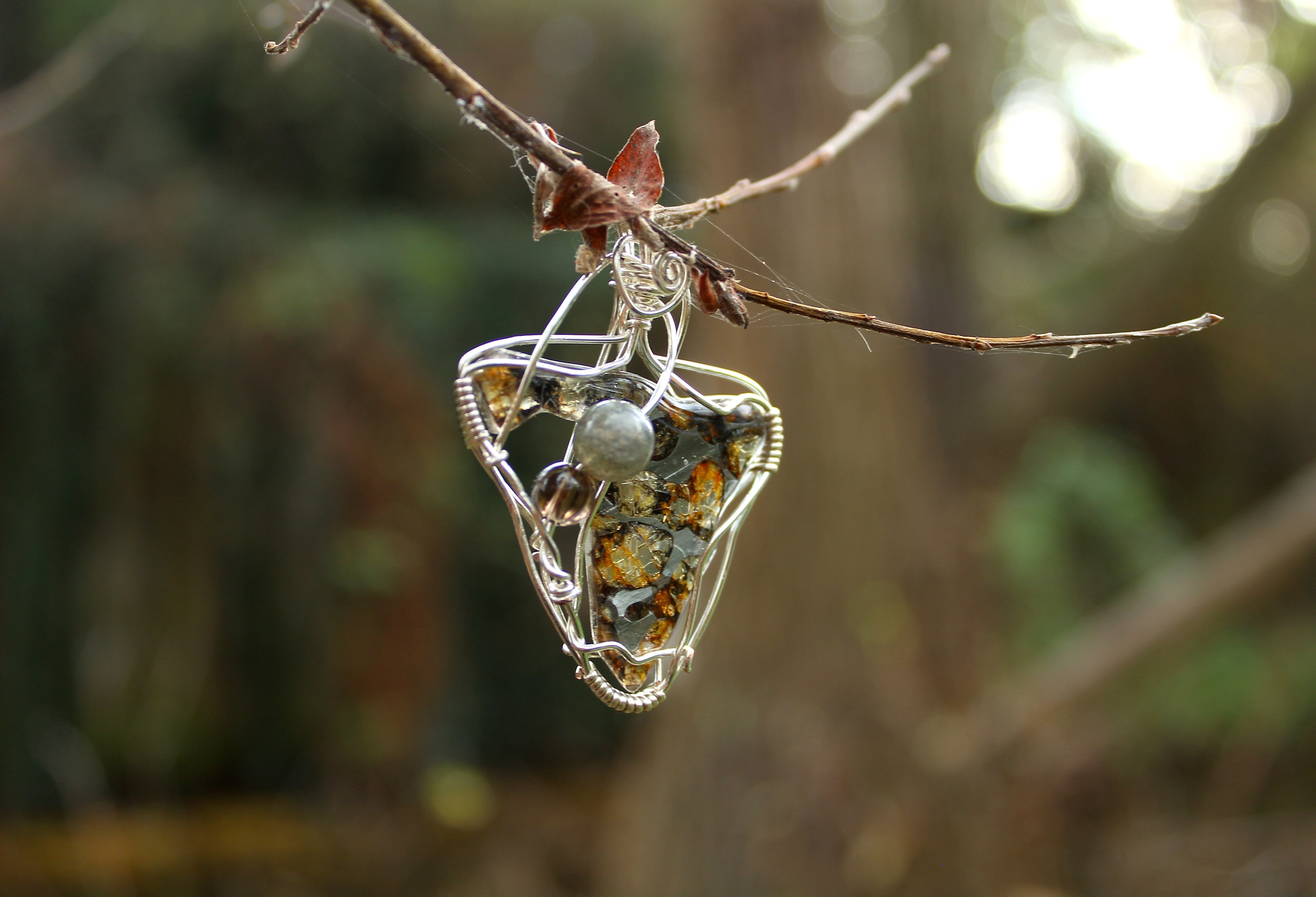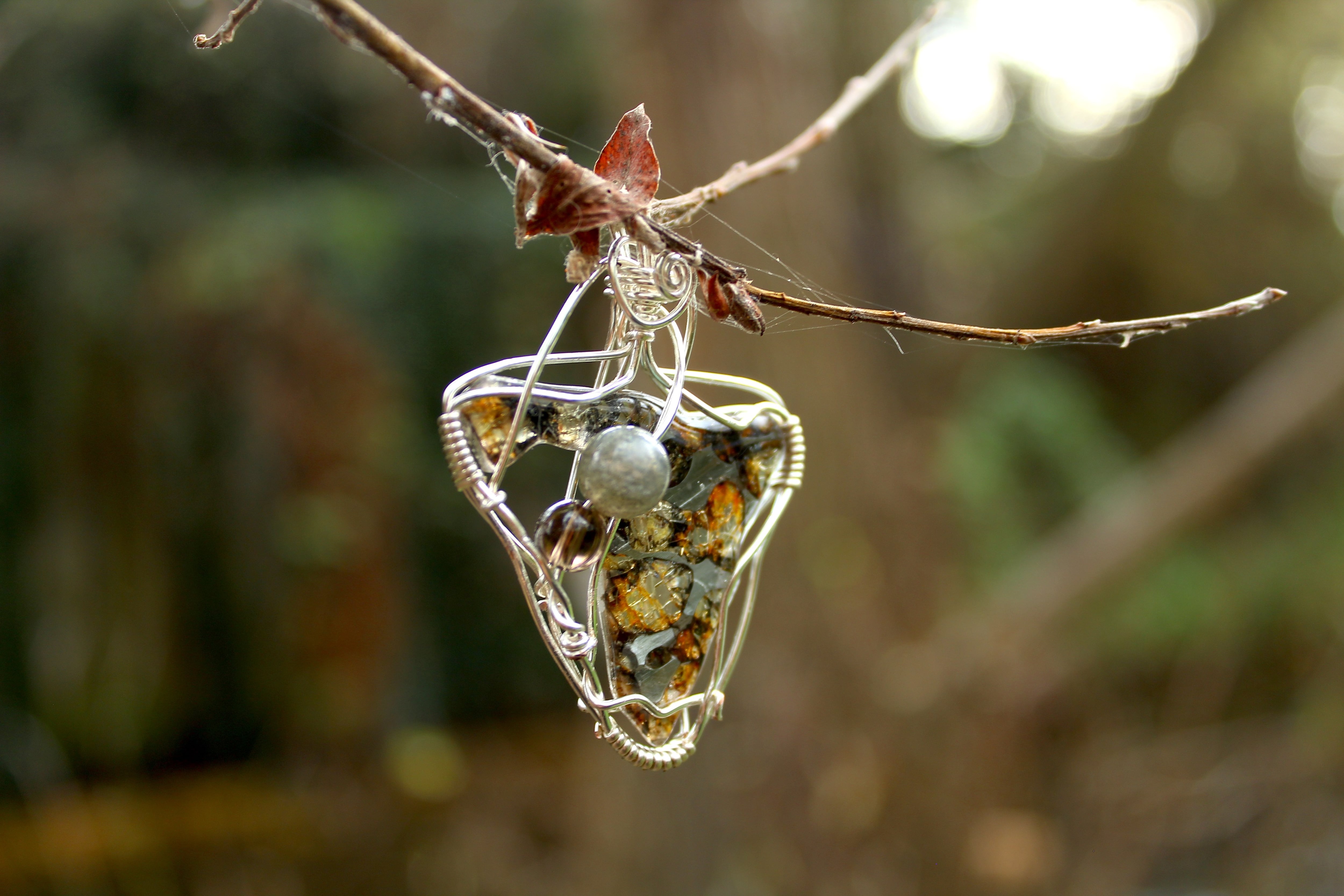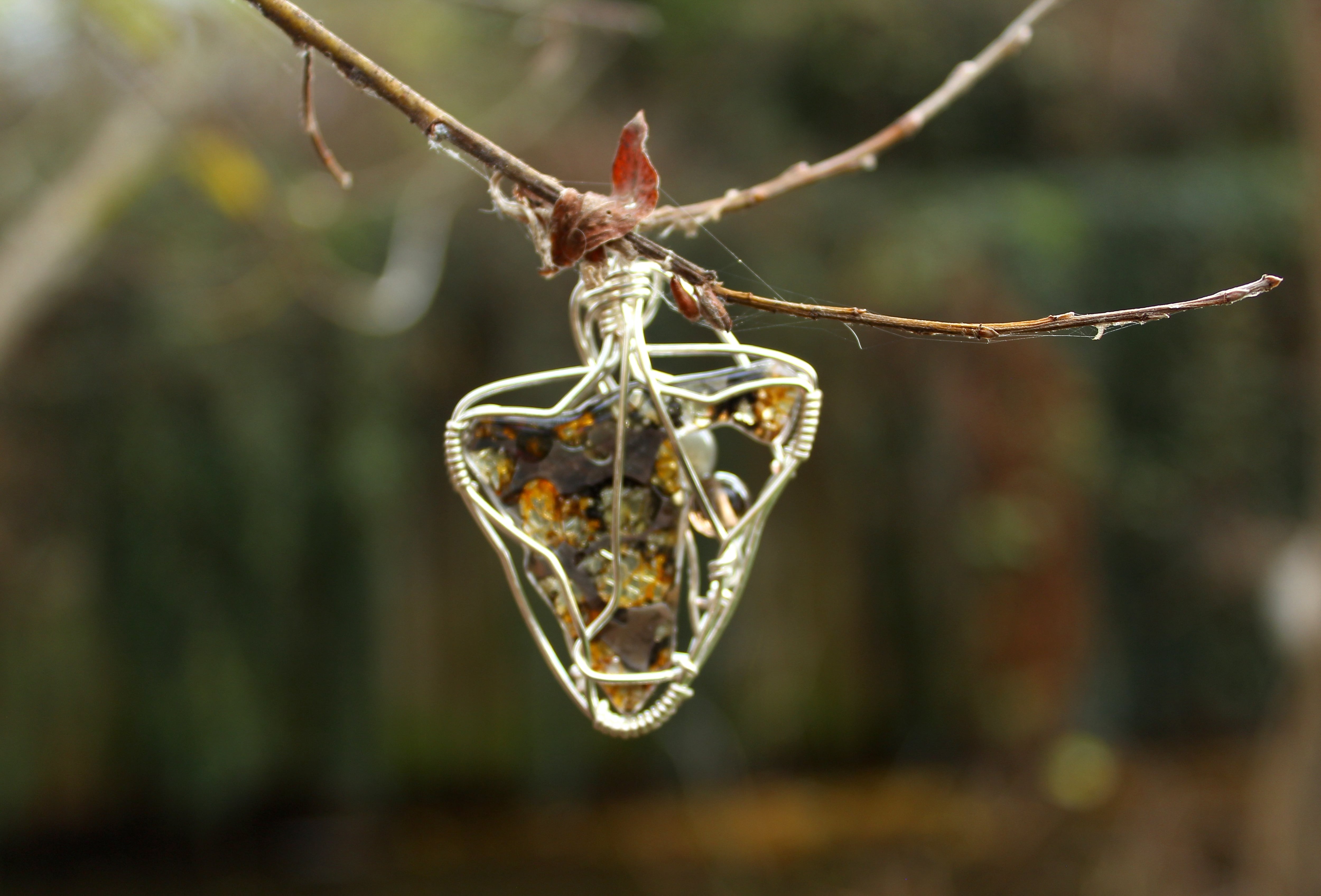 小さめですが美しいセリコパラサイトの原石を、シルバーワイヤーで巻きました。