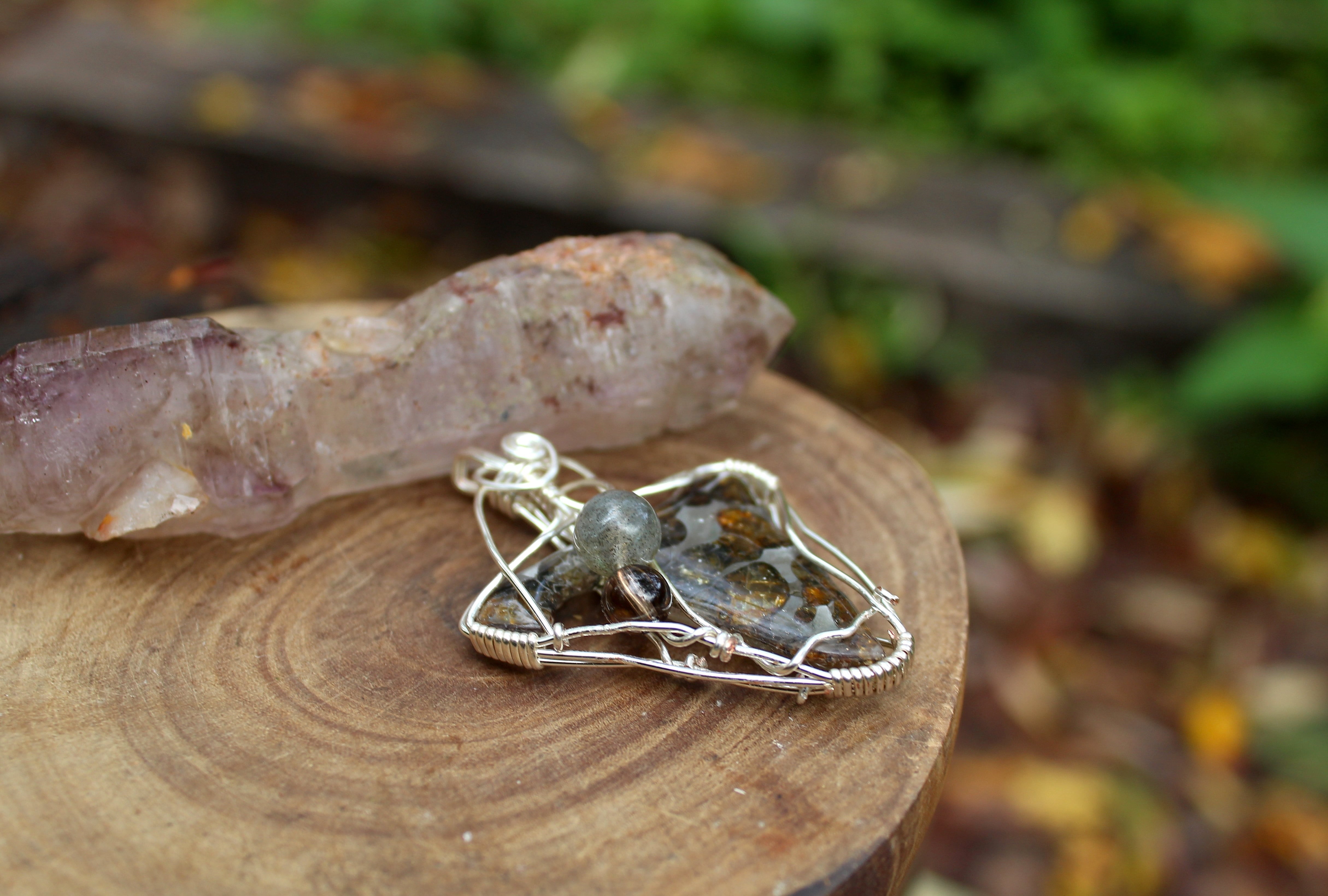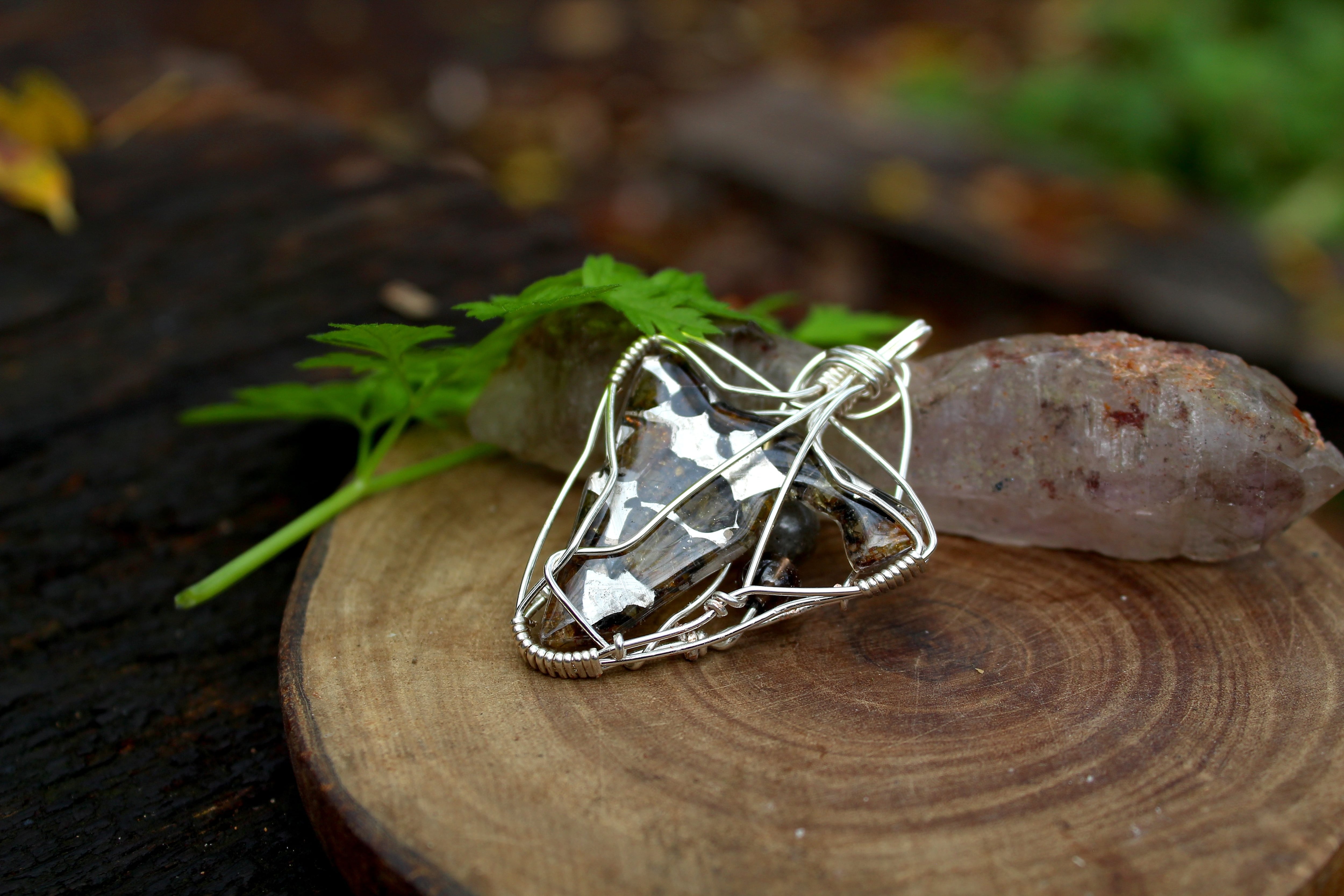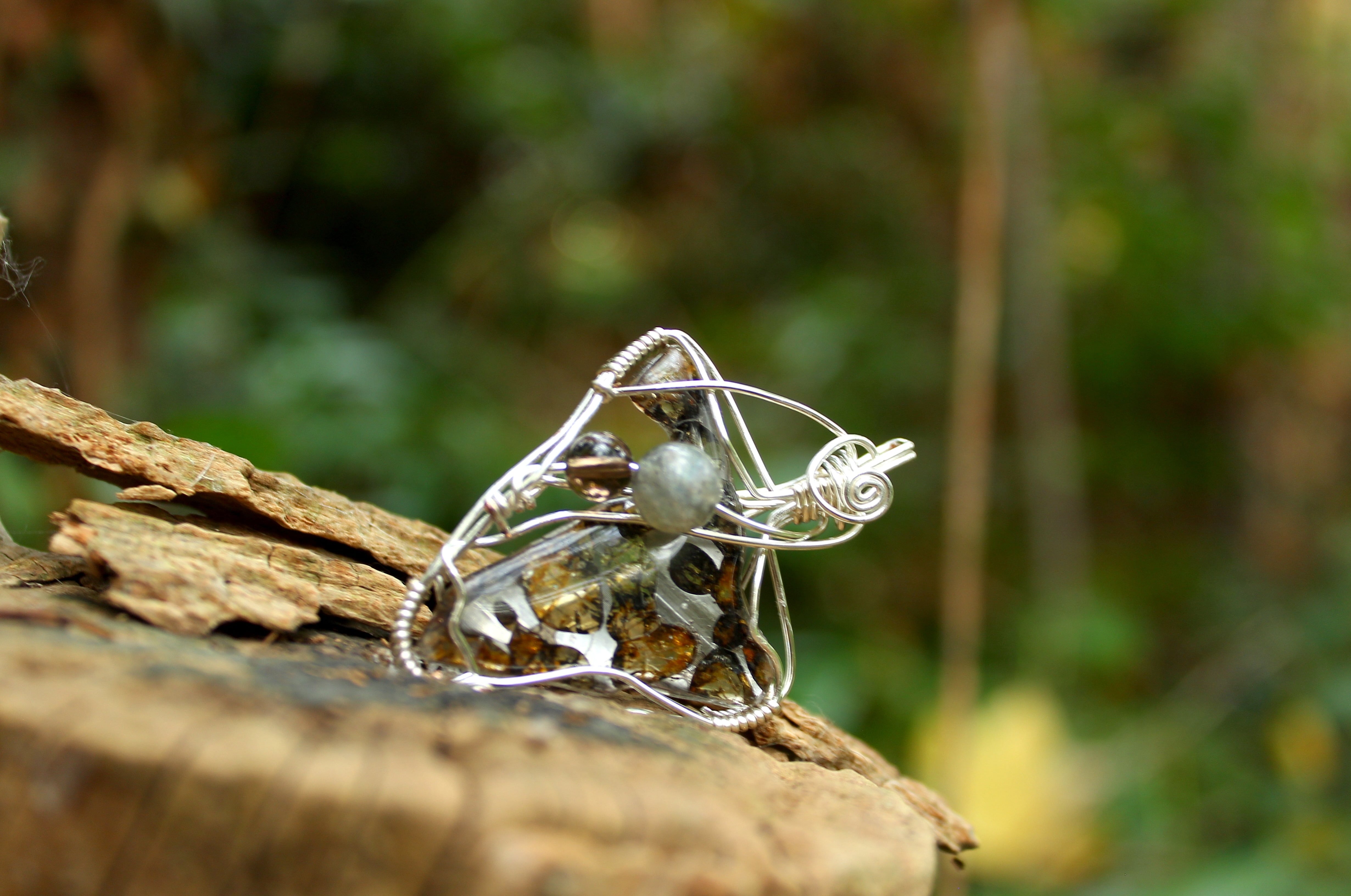 小さめですが美しいセリコパラサイトの原石を、シルバーワイヤーで巻きました。