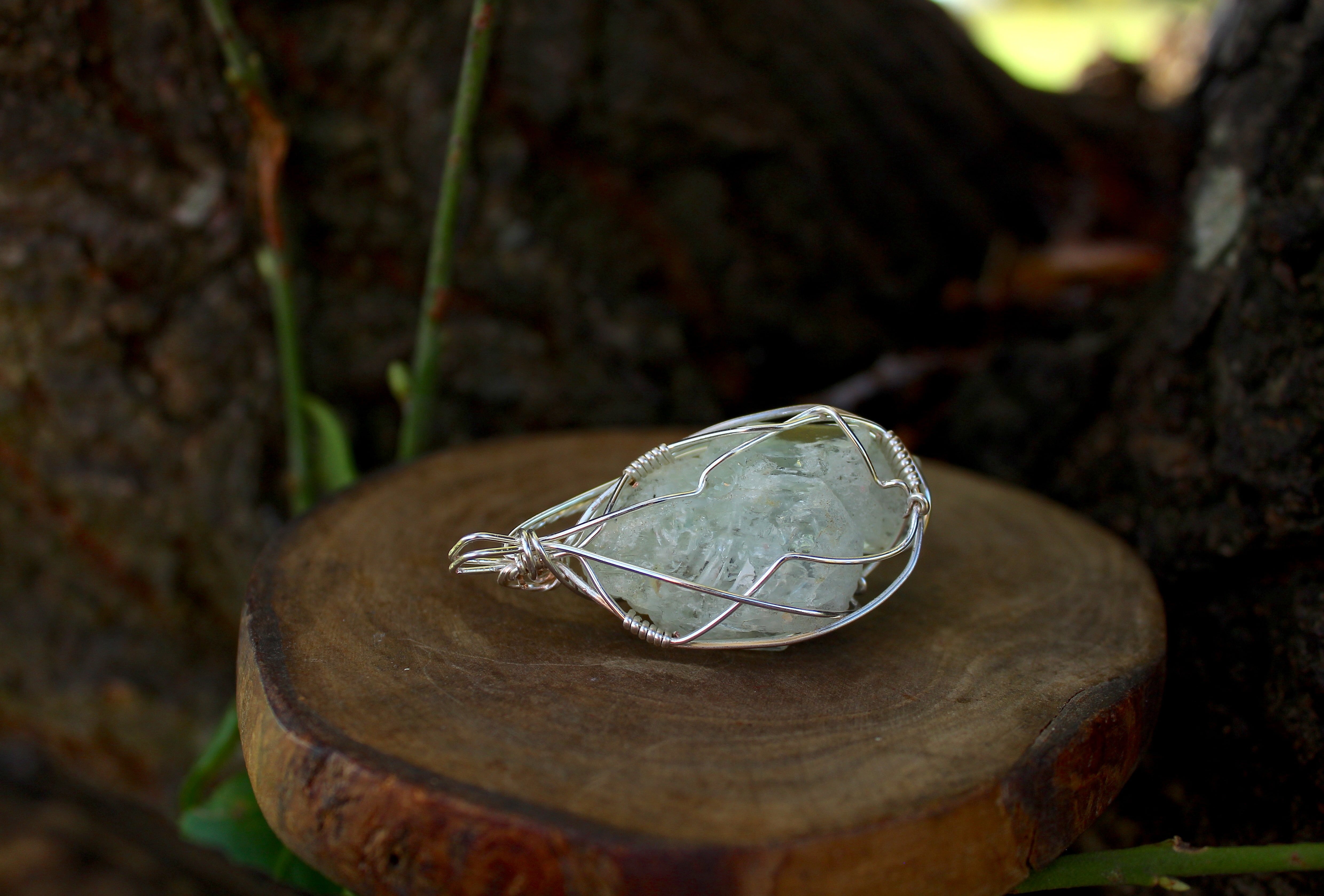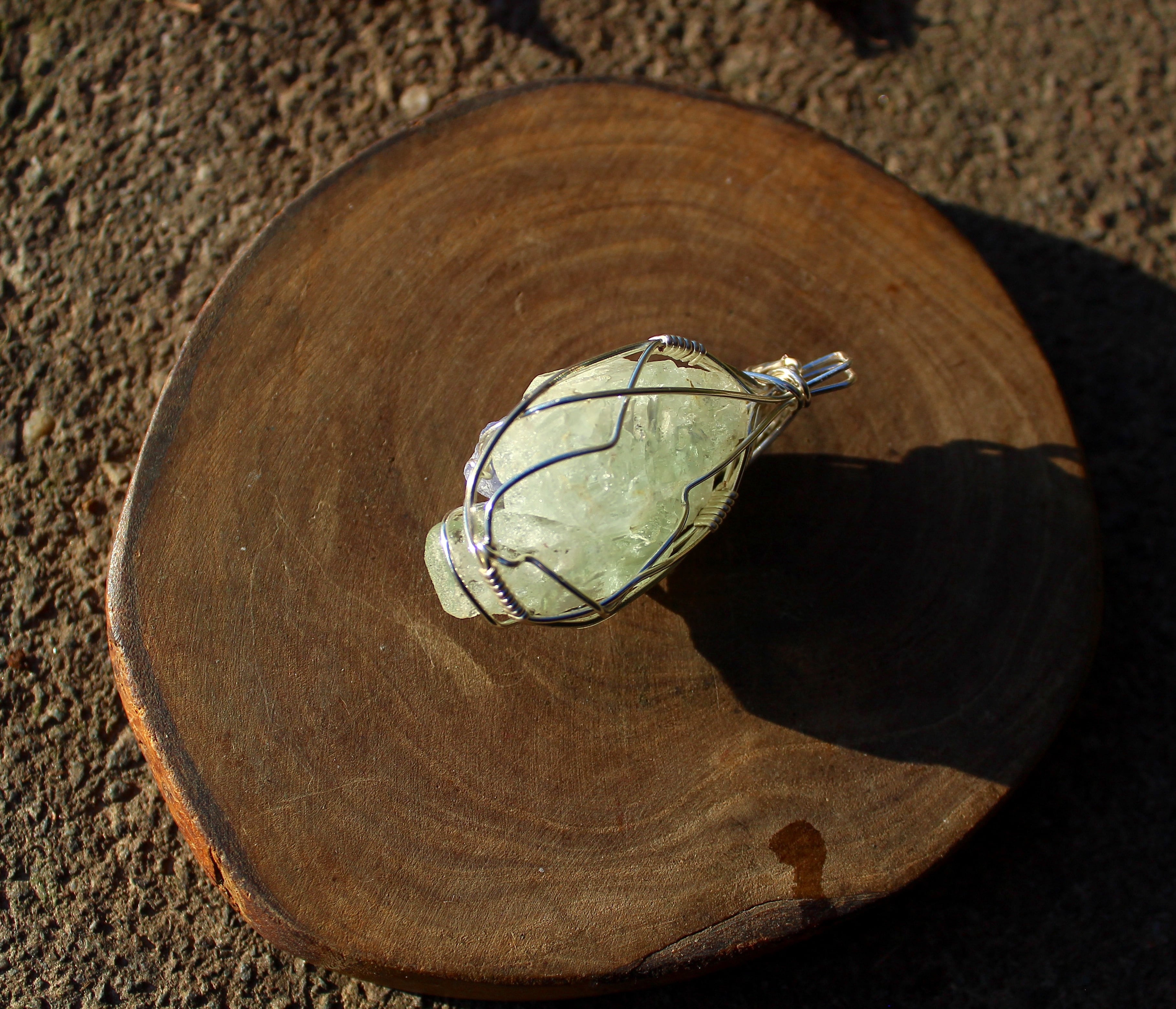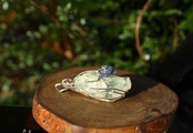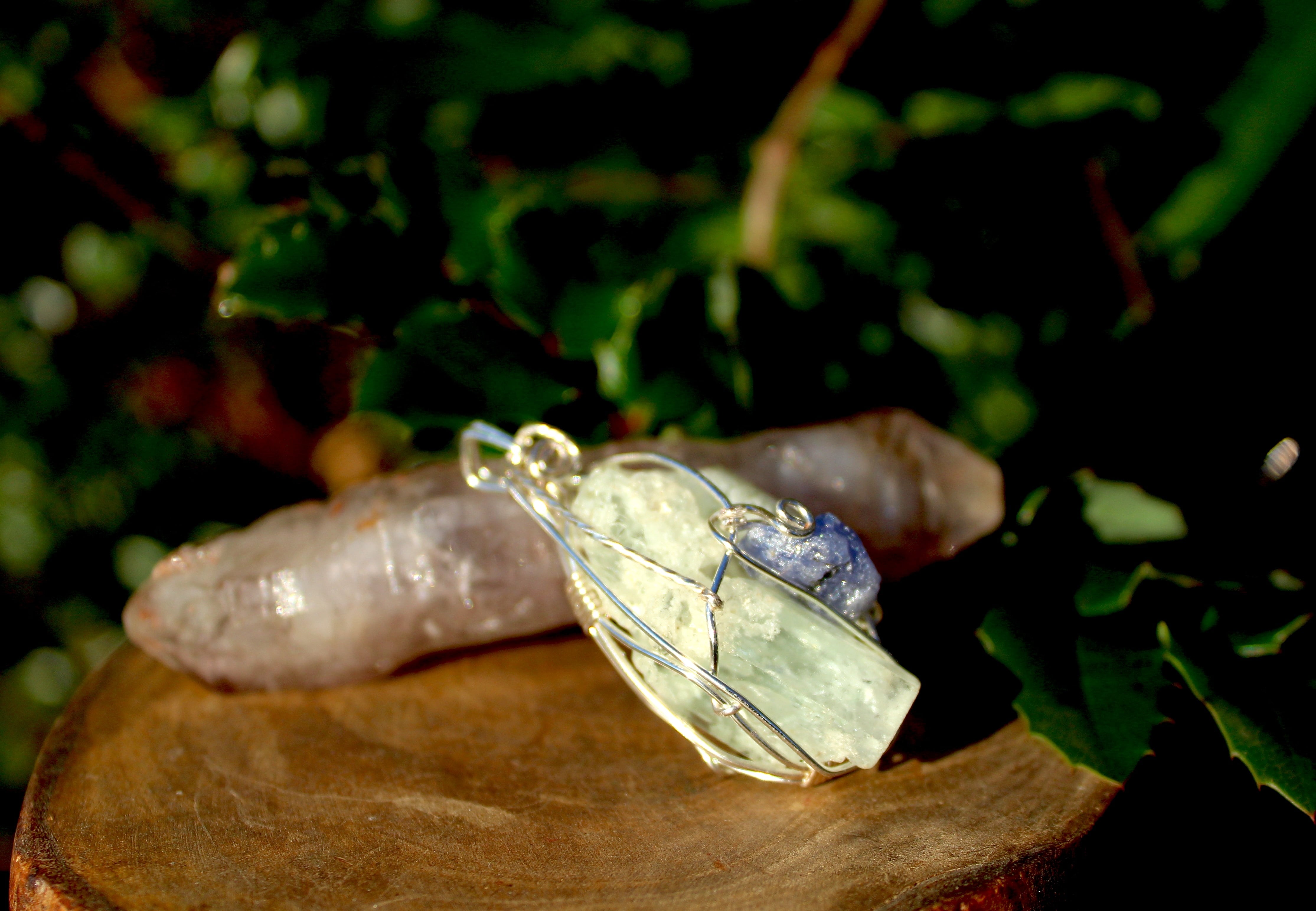 シルバーのワイヤーで巻きながら、タンザナイトのナチュラルラフビーズを留つけました。