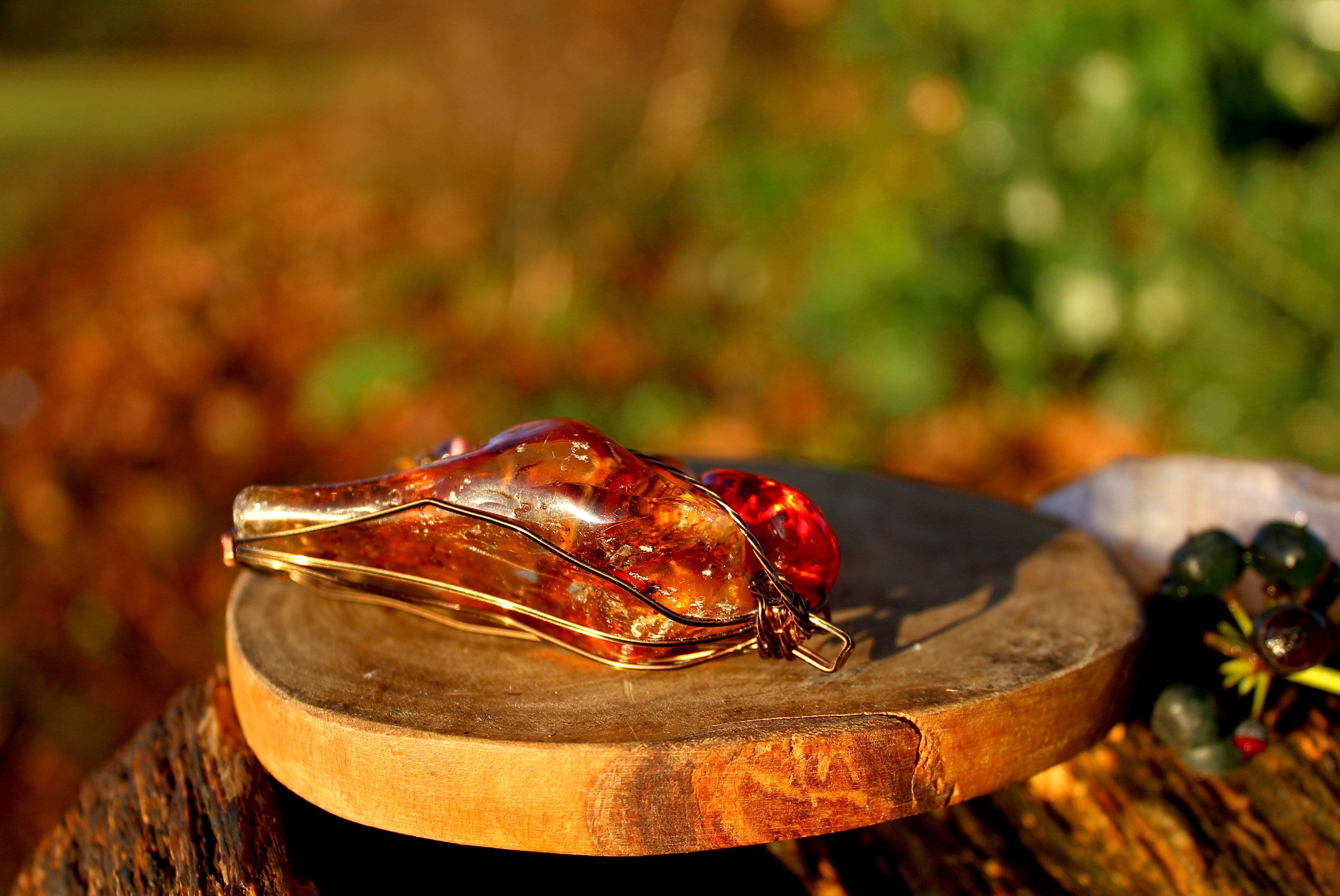 霊的向上を促し、予言やテレパシス能力を向上させ、神秘の力を目覚めさせます。情報、伝達を容易にする力もあると言われているので、他人の言葉を理解しにくい人は、この石の力を借りると良いでしょう。アンバーは太陽のエネルギーを含み、元気のない時に身につけると生命力が高まり、気力が湧いてきます。過去の恐怖心や罪悪感、不安や絶望感を追い払い、生きる喜びを与えます。アンバーの代表的な色である黄色はコミュニケーションの色で、内気な性格を防ぐともと言われています。また、邪気を払う効果もあるとされています。大人にとっては、健康と長寿の石とされ、子供にとっては、悪霊や災い、病気から守ってくれる石、と信じられています。熱と光をたくさん放射し、強力な磁気エネルギーを持った石です。低い熱伝導性があるため、触ると温かみを感じます。それにより鎮静作用があり、ラビングストーンとして、より愛されてきました。アンバーは身に付けるだけでなく、いつも指でこするようにしましょう。そうすることにより、高ぶった感情を鎮めて、精神を安定させてくれるそうです。さらに、こすることにより、静電気を帯びる帯電効果があることから良い気を引き付けるとされ、金運、仕事運、人気運が良くなると言われています。ヨーロッパでは、アンバーをプレゼントする事は「幸運を贈る」という意味を持ち、英国では結婚10年目にアンバーを贈る「琥珀婚」という風習があります。