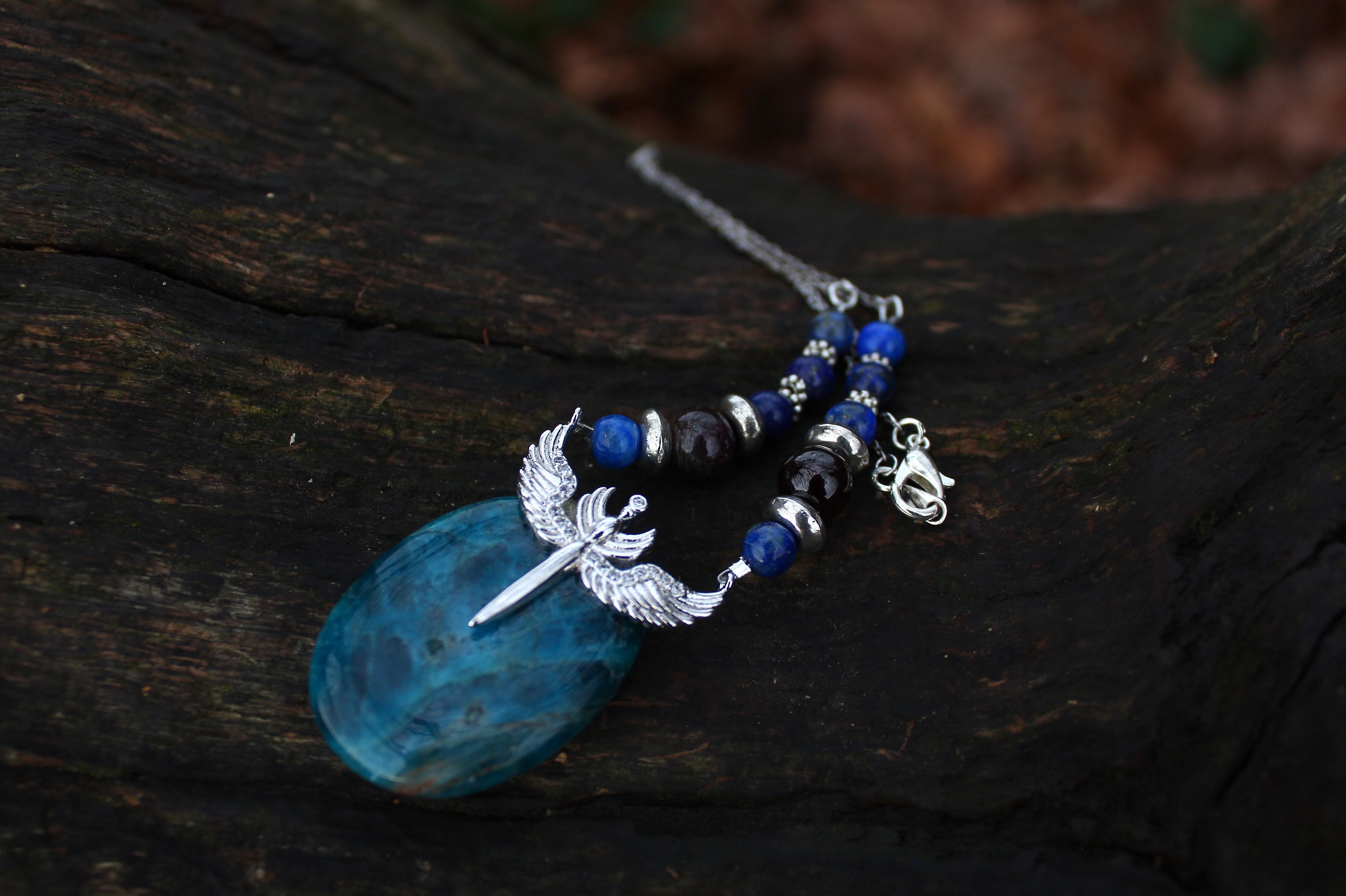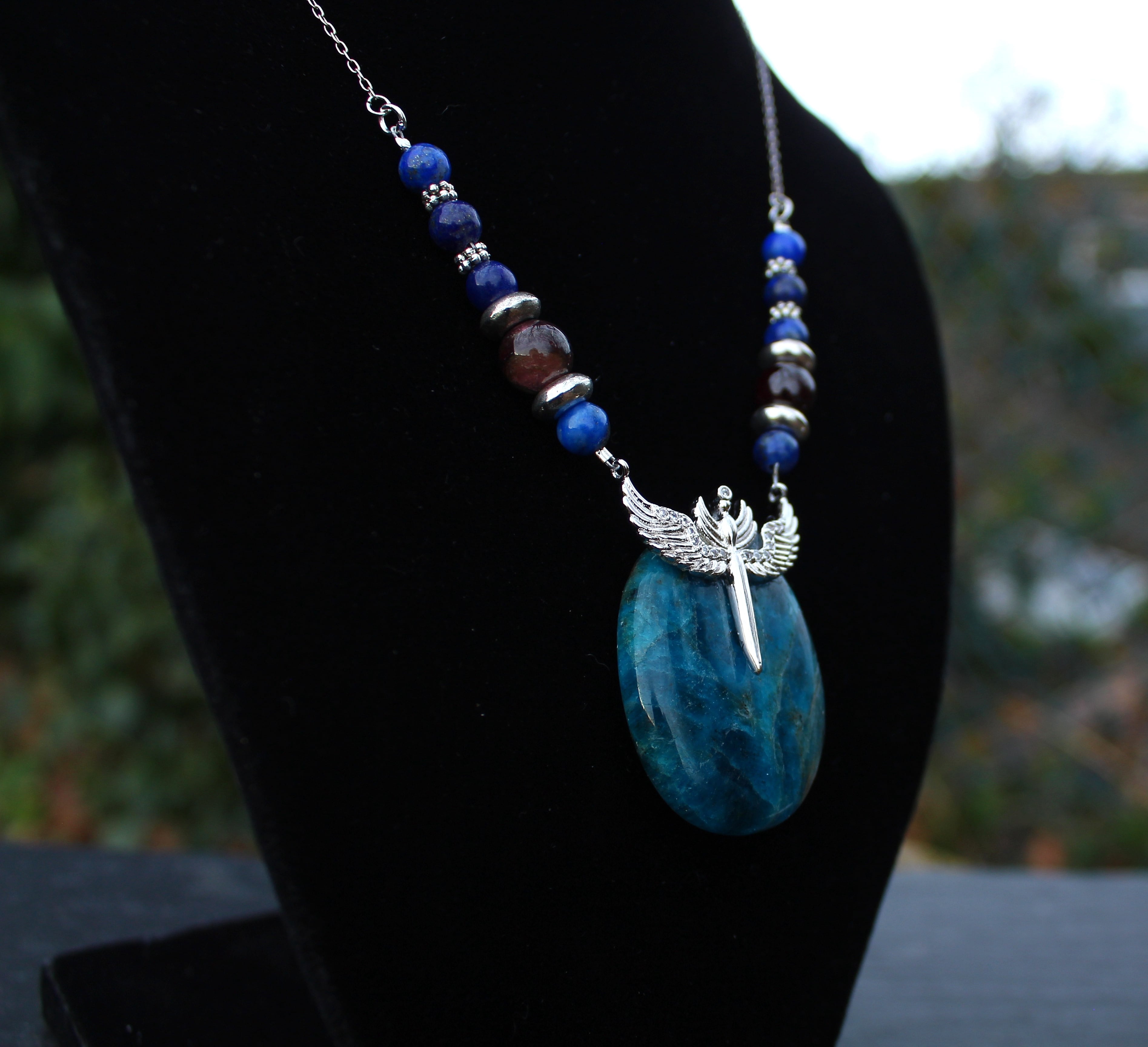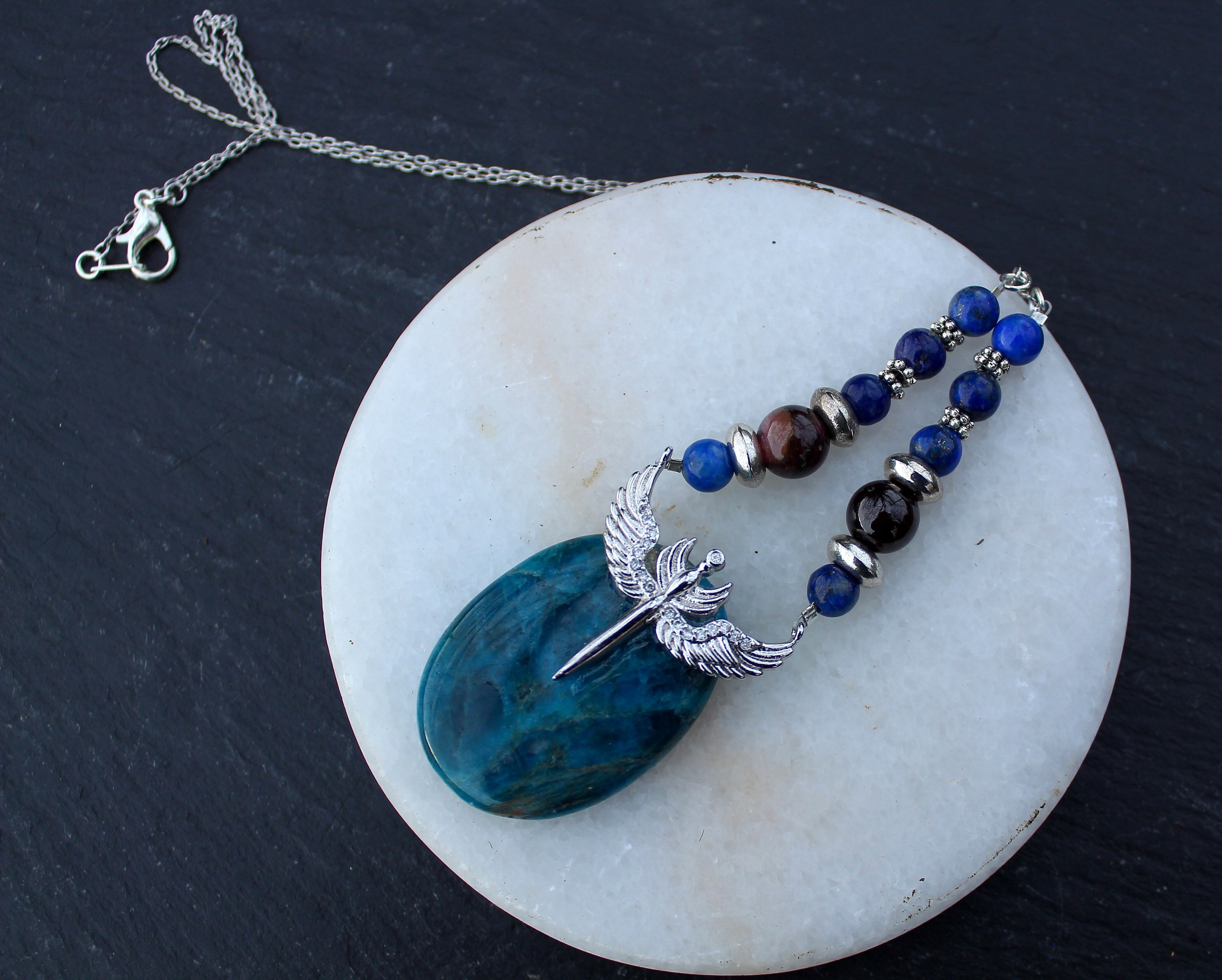 ブルーが美しいアパタイトのパームストーンです。シルバーのエンジェルウイングのパーツを止めつけました。