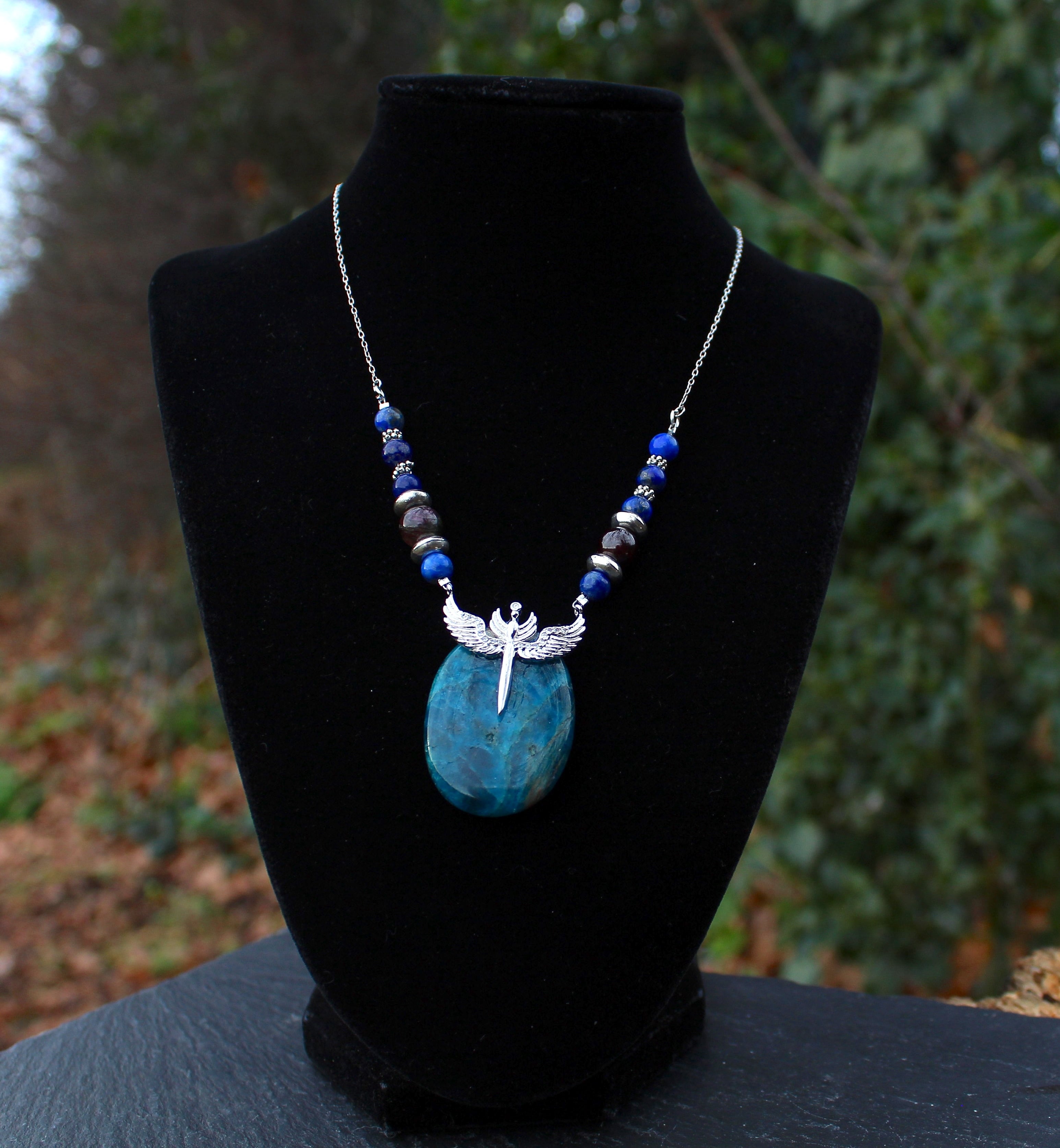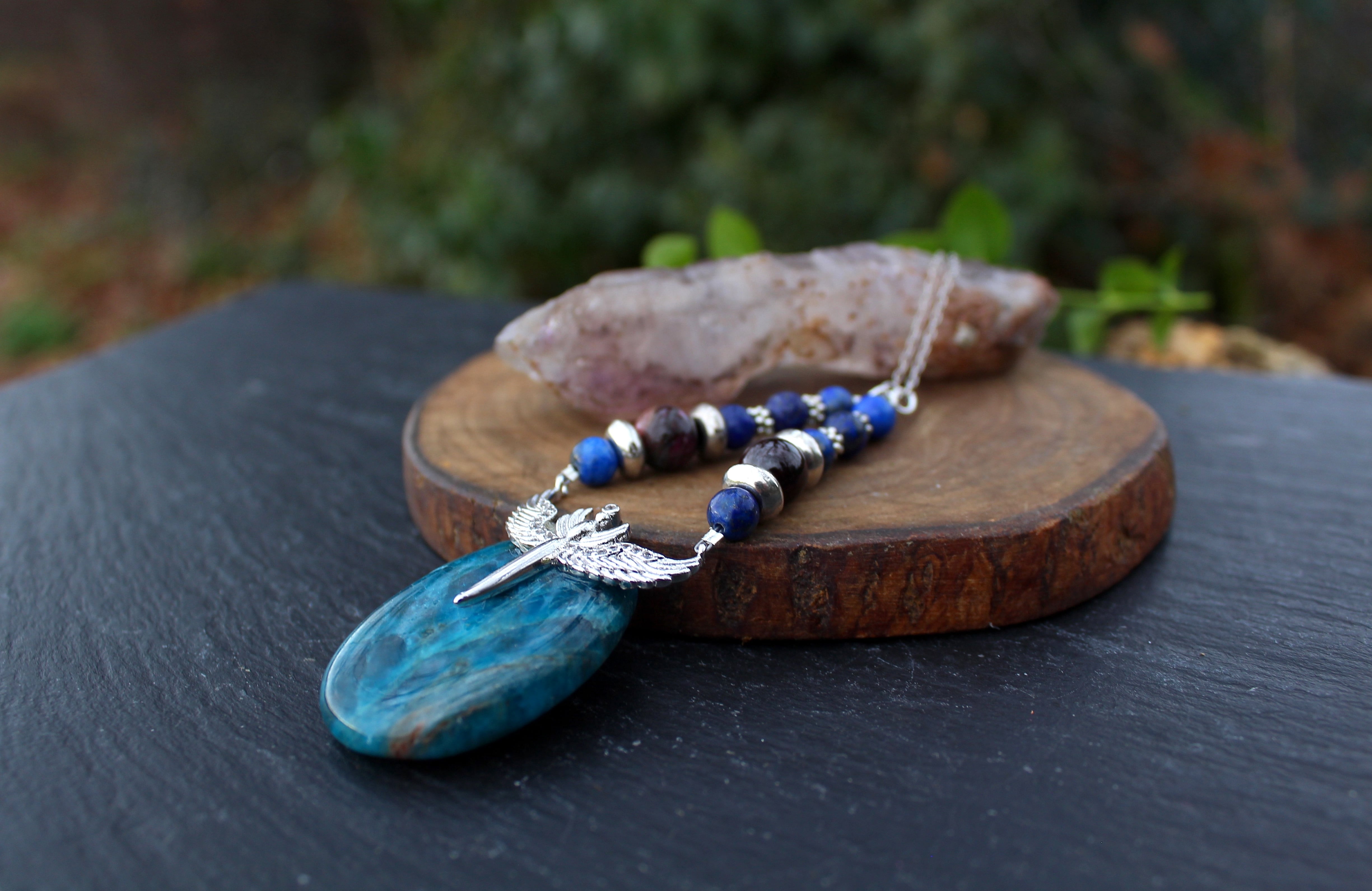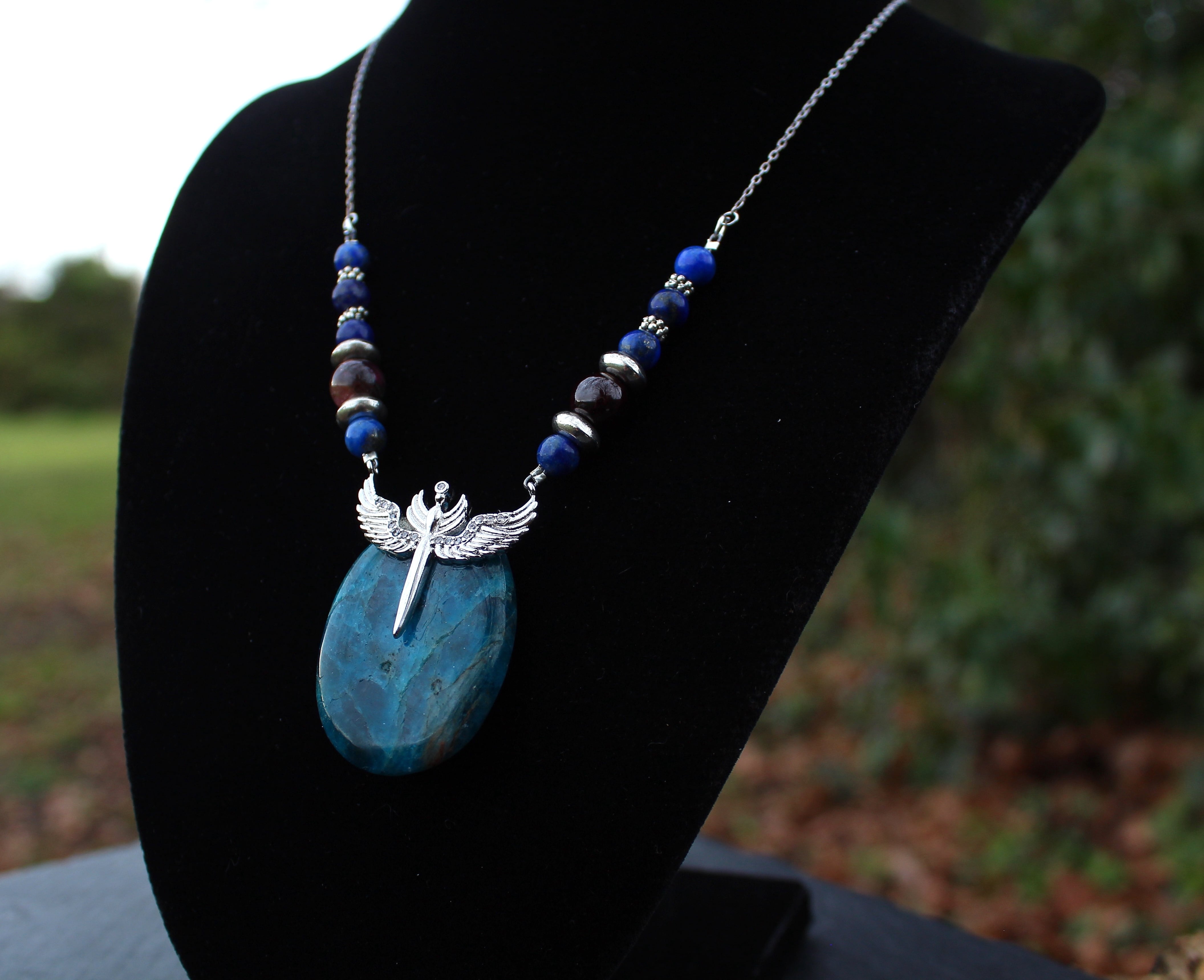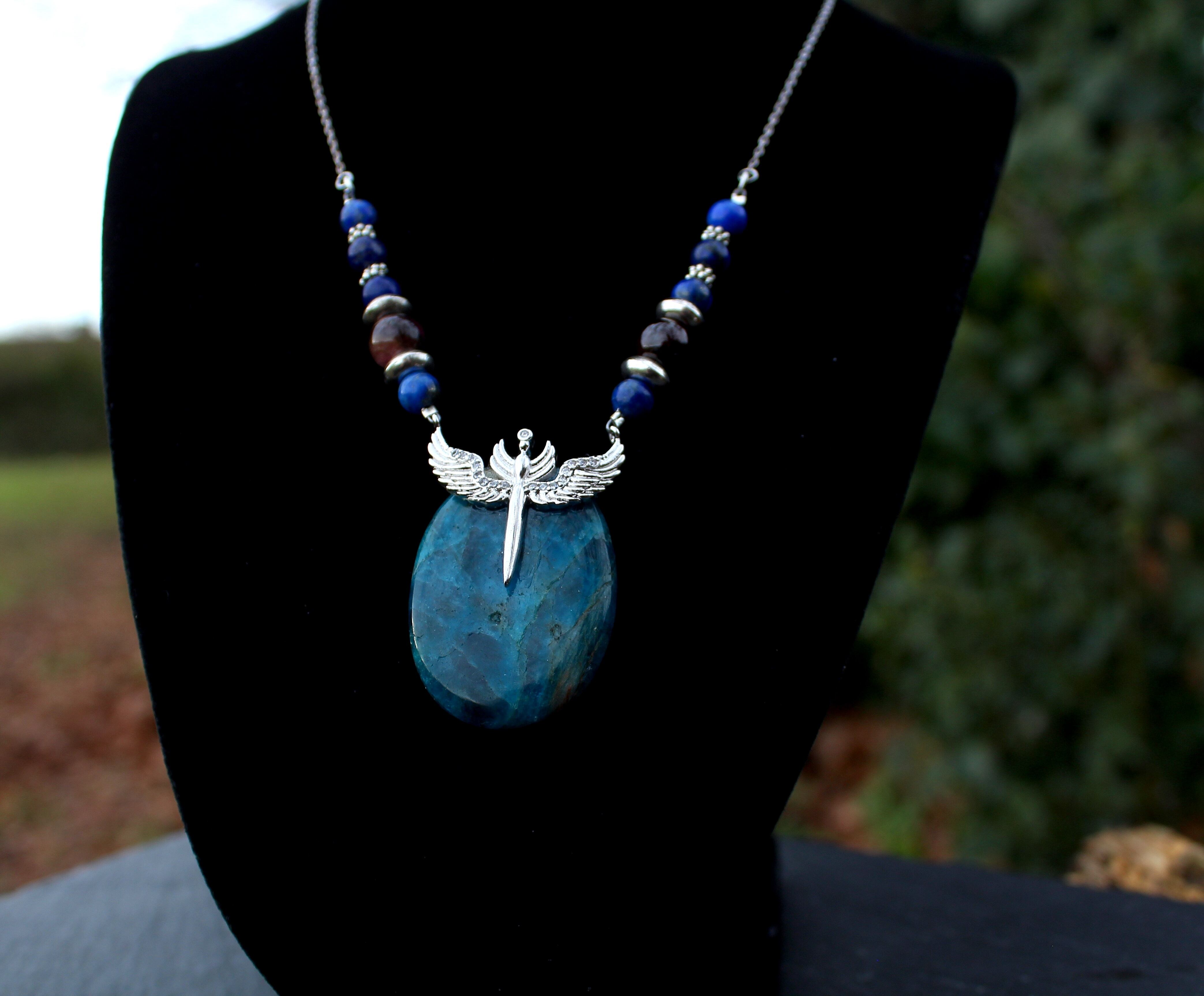 ブルーが美しいアパタイトのパームストーンです。シルバーのエンジェルウイングのパーツを止めつけました。