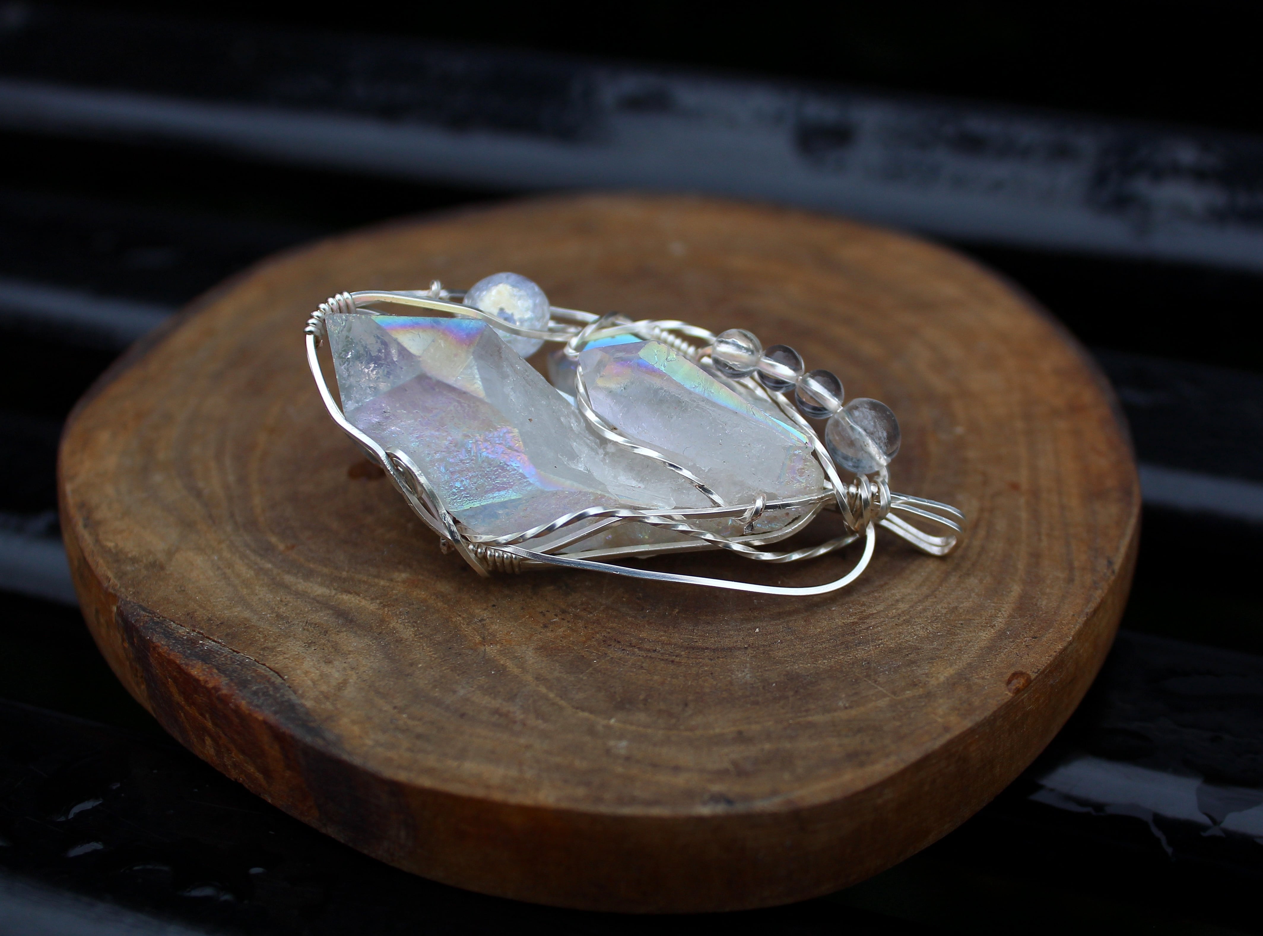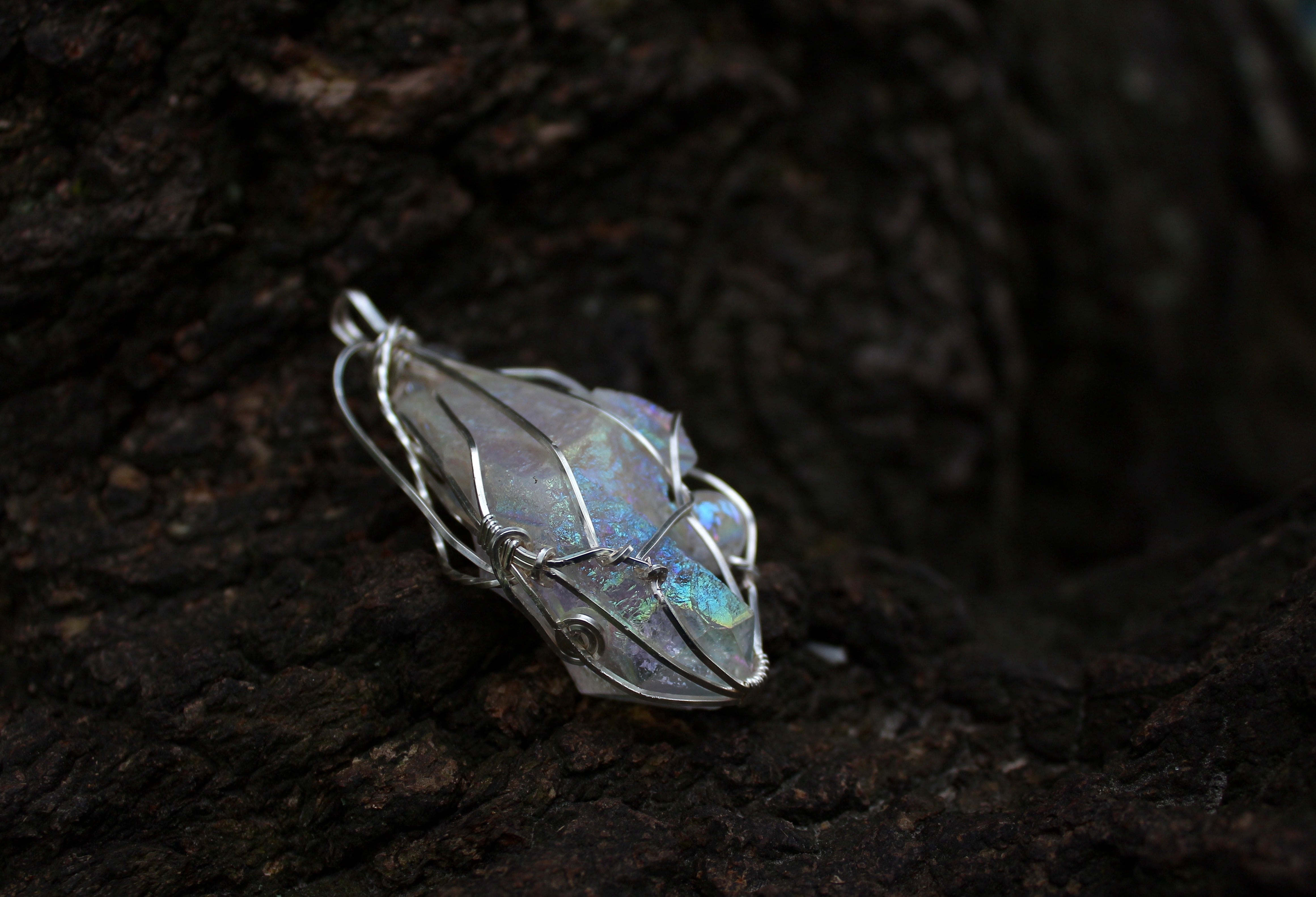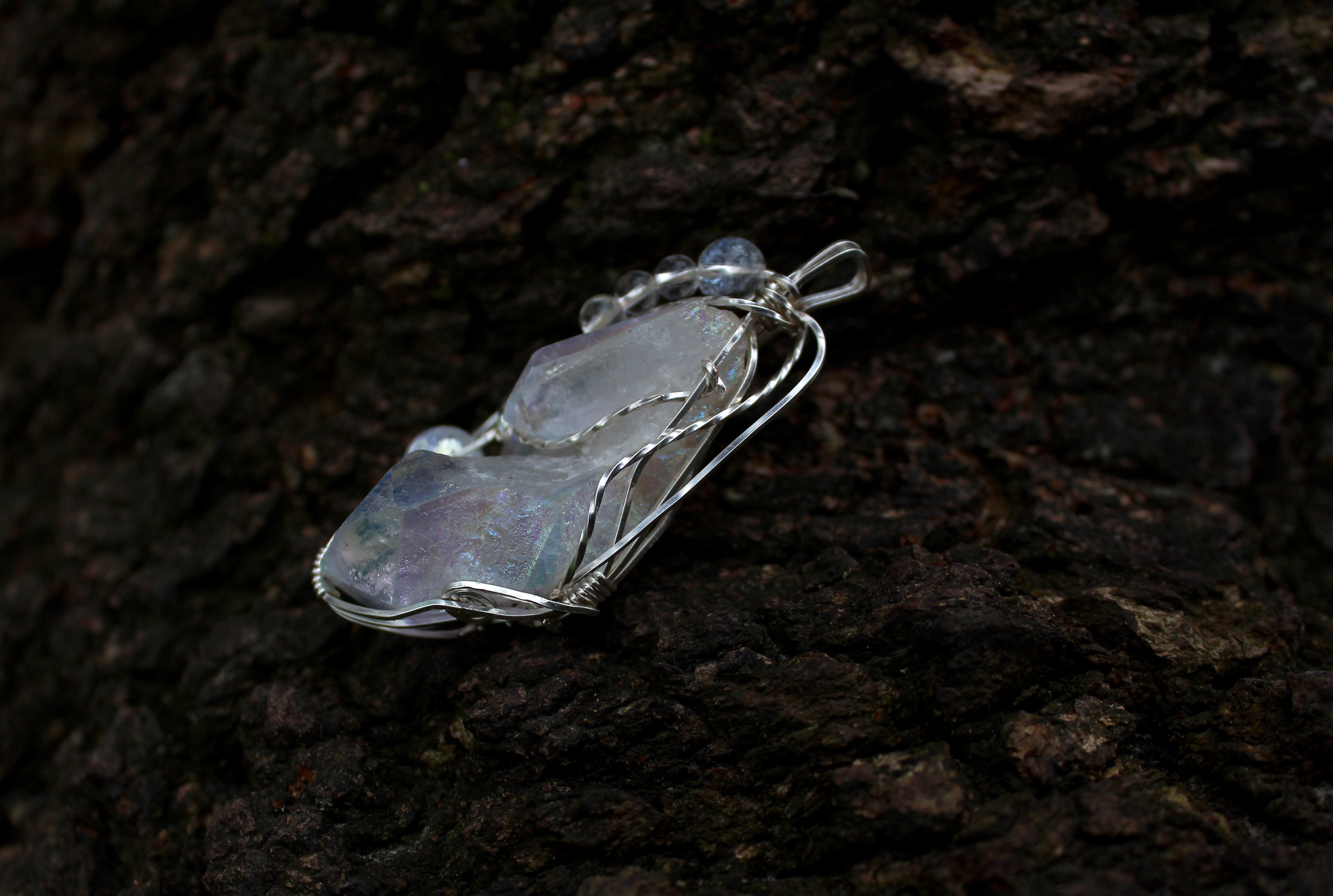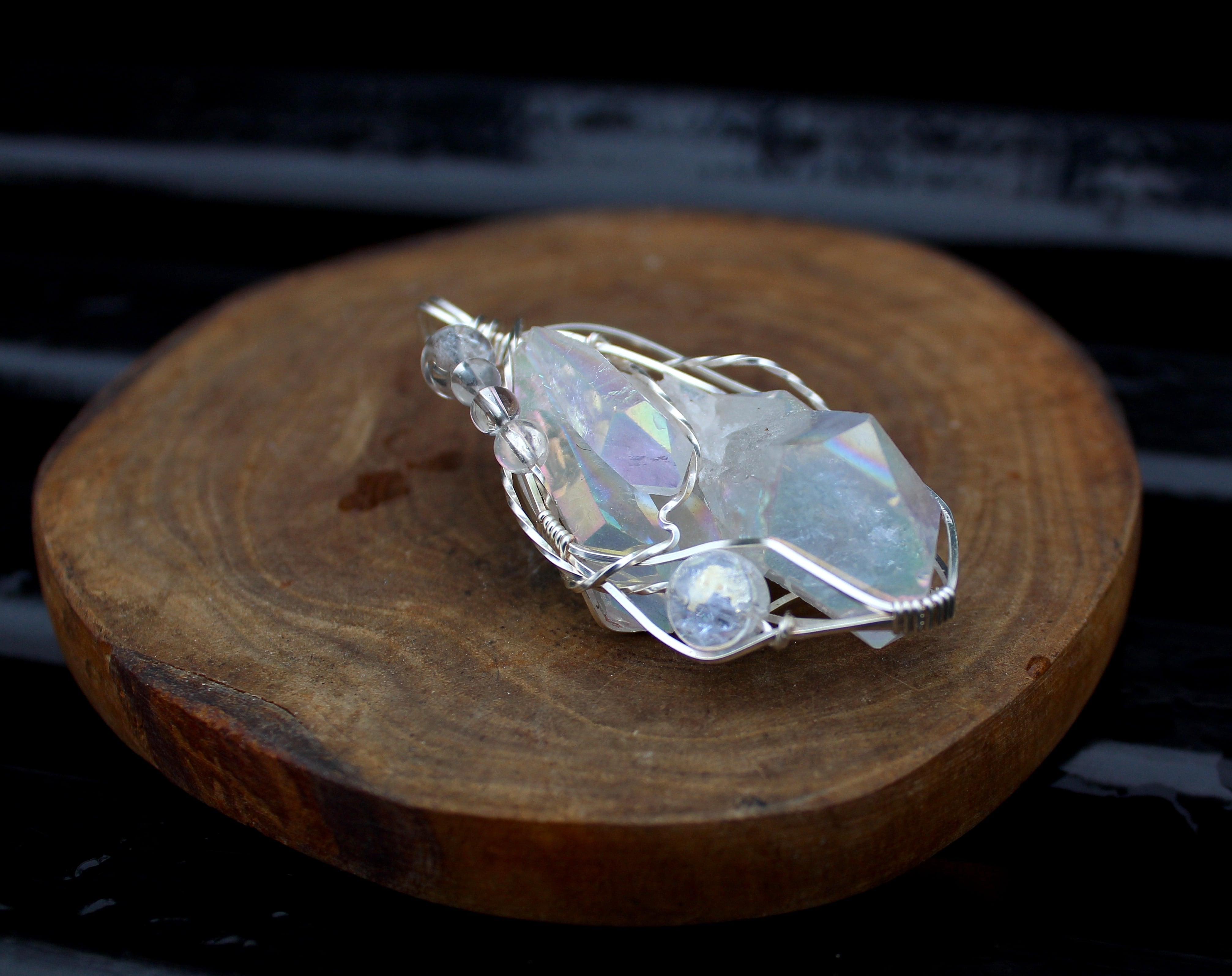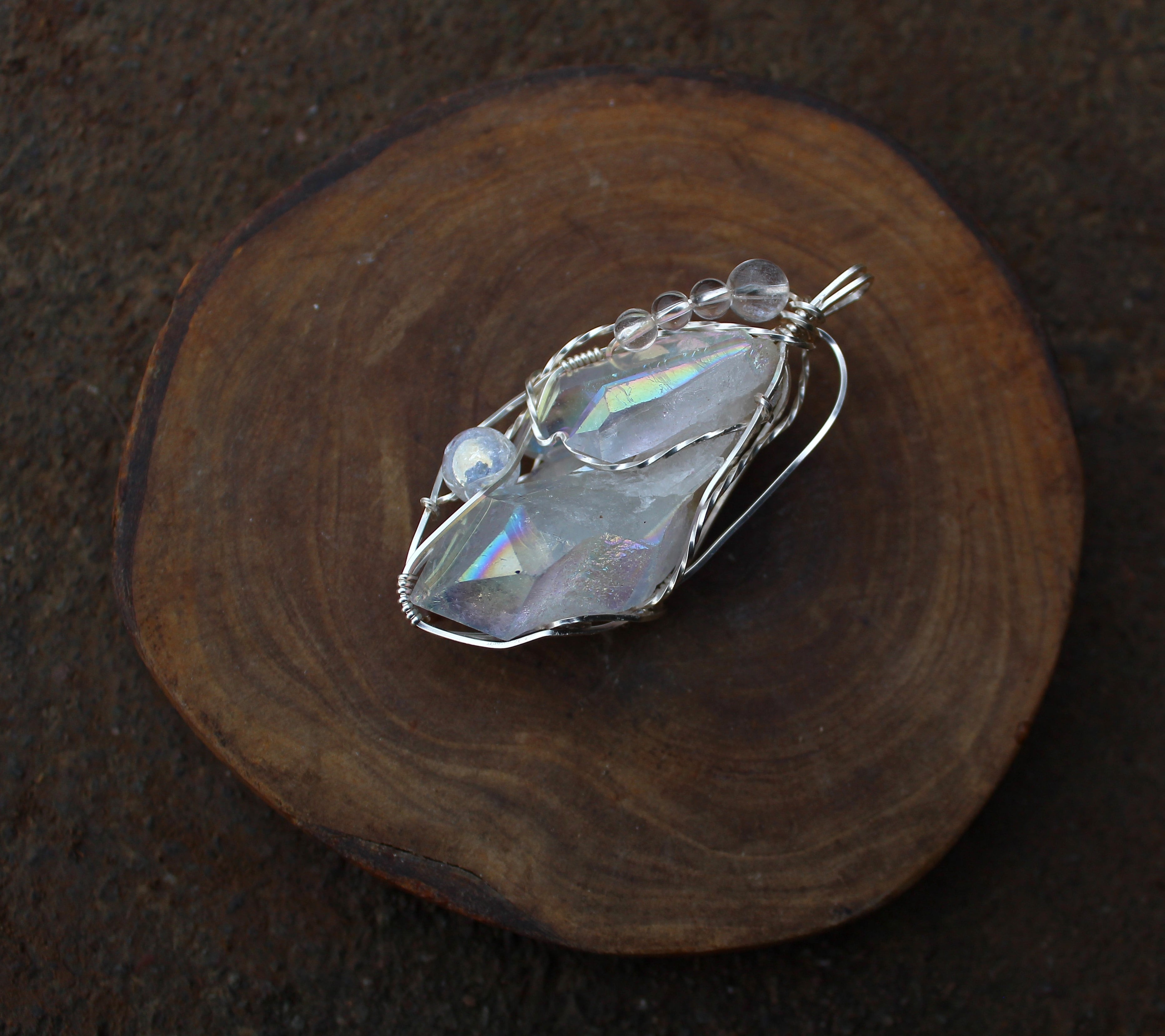 水晶に、人工的に金属を蒸着することで作られるオーラクォーツ。その中でも、プラチナを蒸着させたものがエンジェルオーラクォーツです。蒸着加工を施したことで、水晶の力が最大限に引き出され、さらに加工に用いた金属により、それぞれ固有の特性が生まれます。