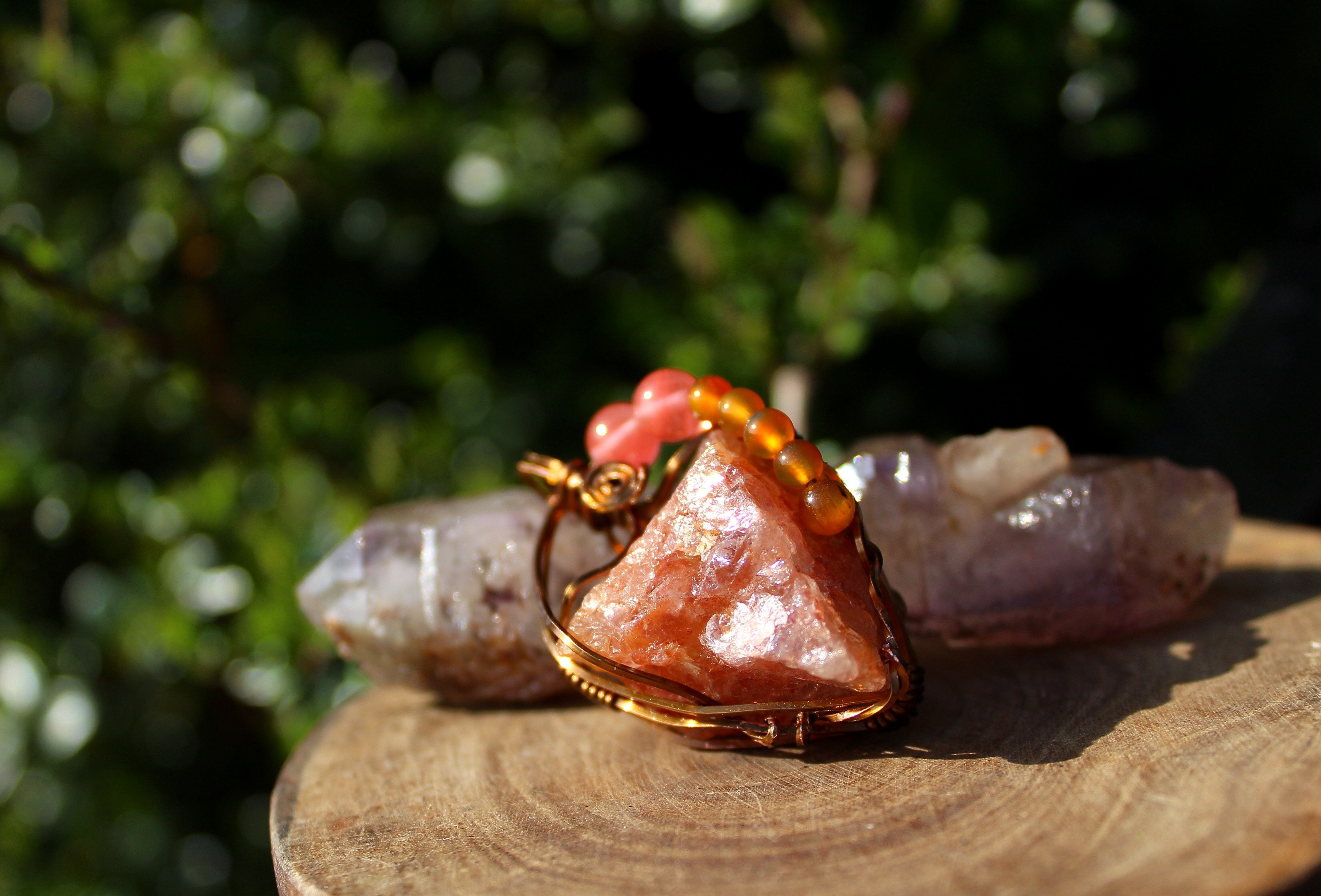 生命エネルギーを活性化し、エネルギーセンターを光で満たしてくれる石です。活力、健やかさ、元気、明るさ、バイタリティを与えてくれる石です。創造力を豊かにし、勇気や物事を具現化する能力を高めます。自分自身を信頼し、自己肯定感を強めて、迷いを取り去り、人生の真の目的へと誘います。