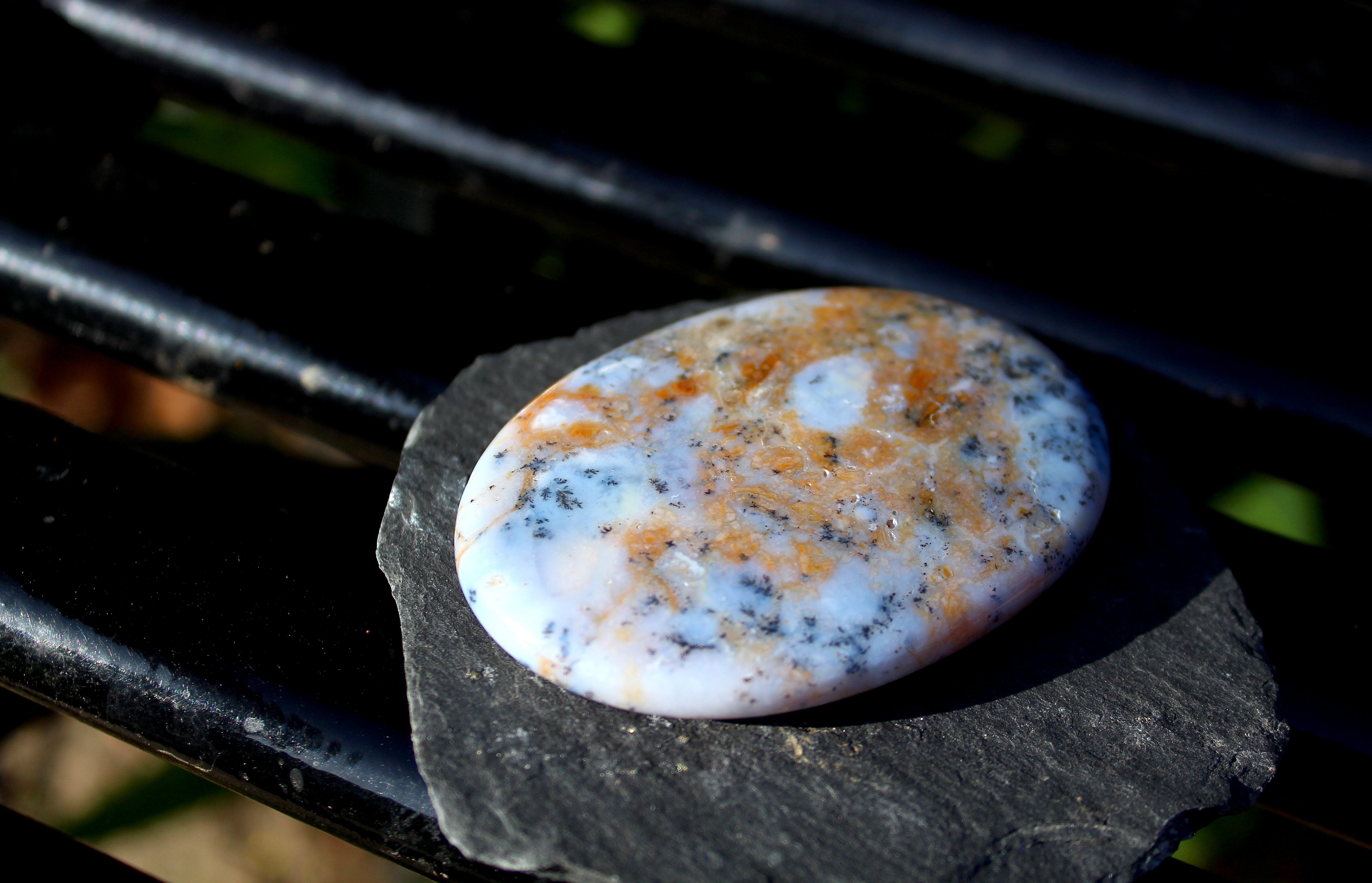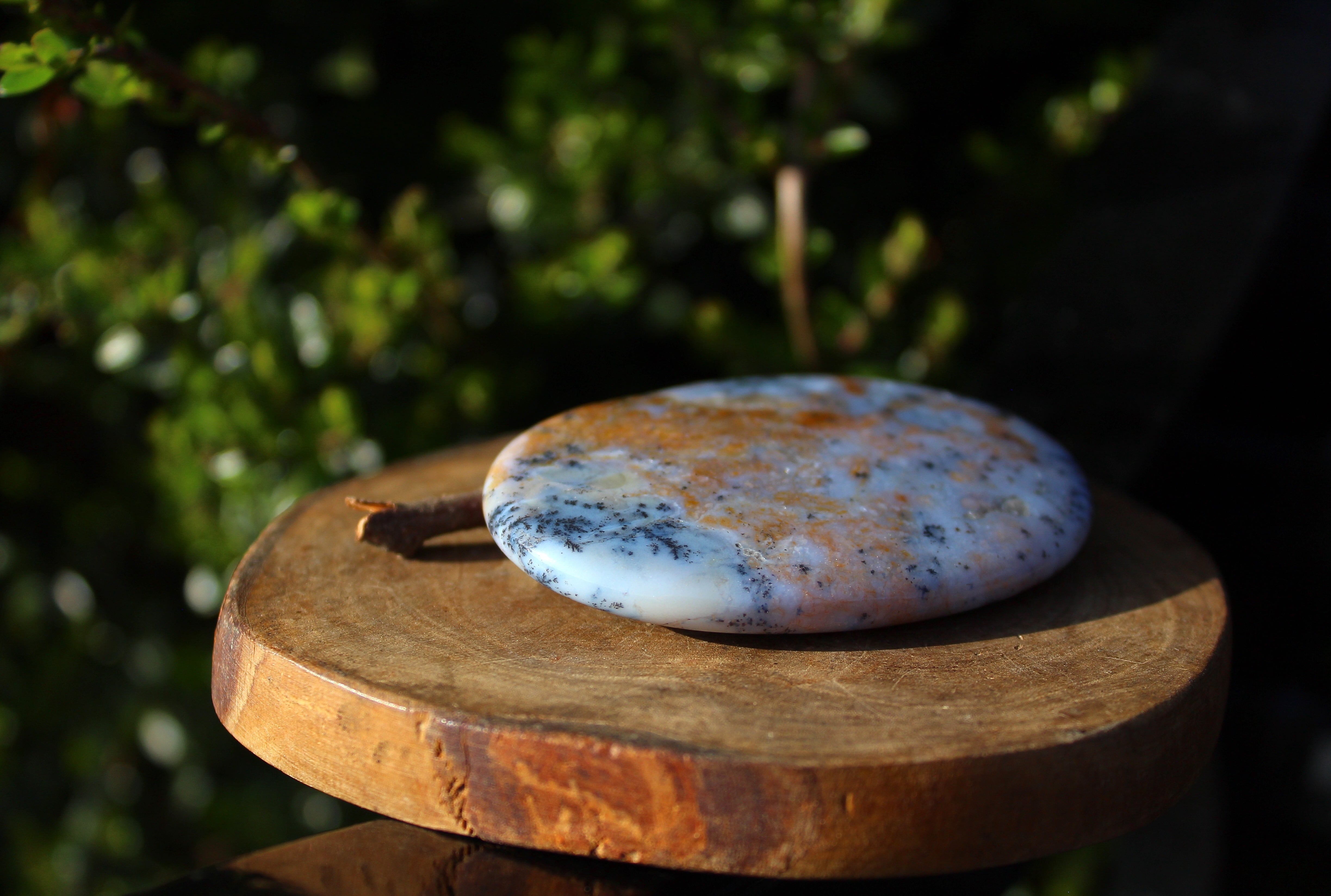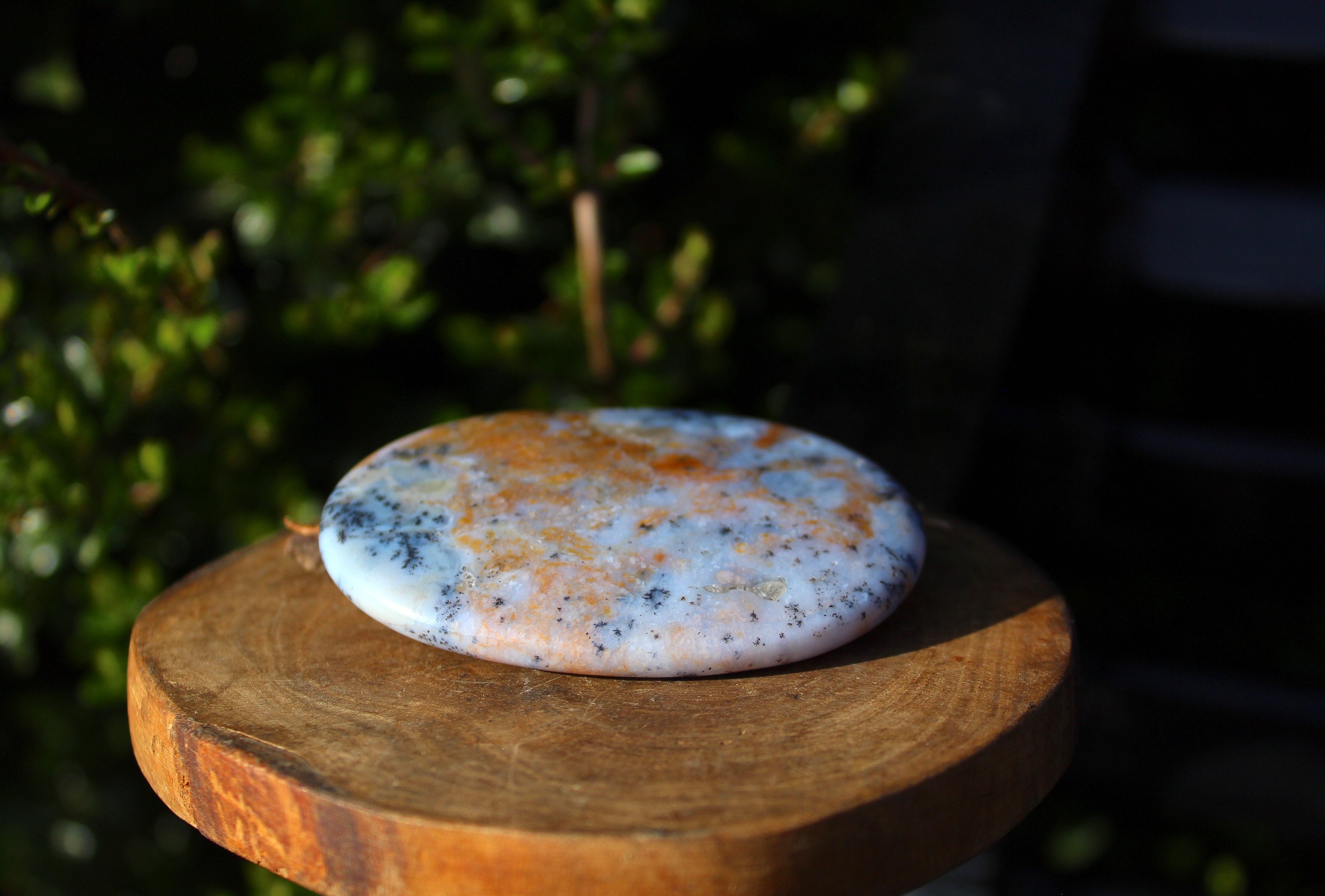 白、黒、茶色のミックスが、なんとも神秘的でなパームストーンです。