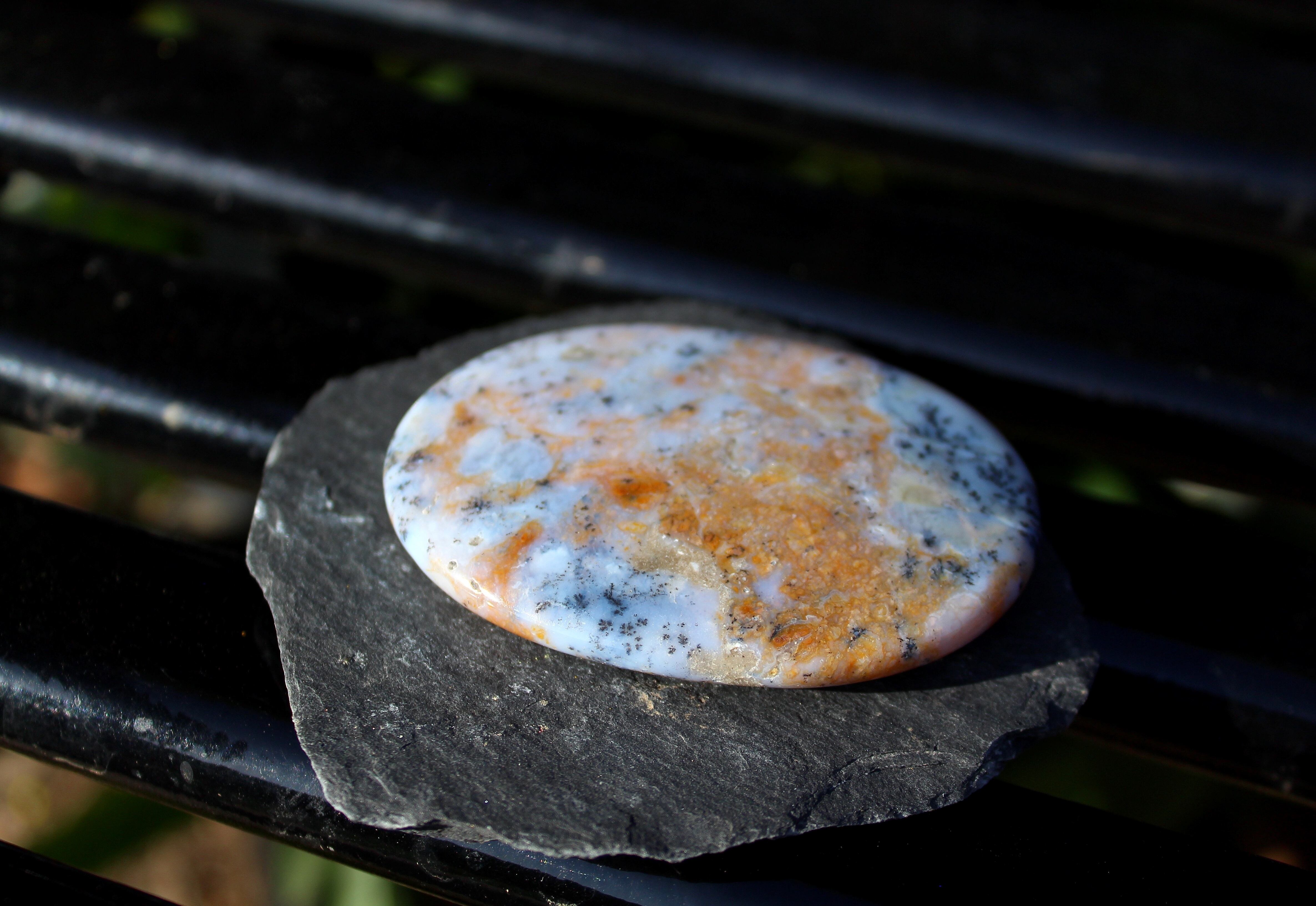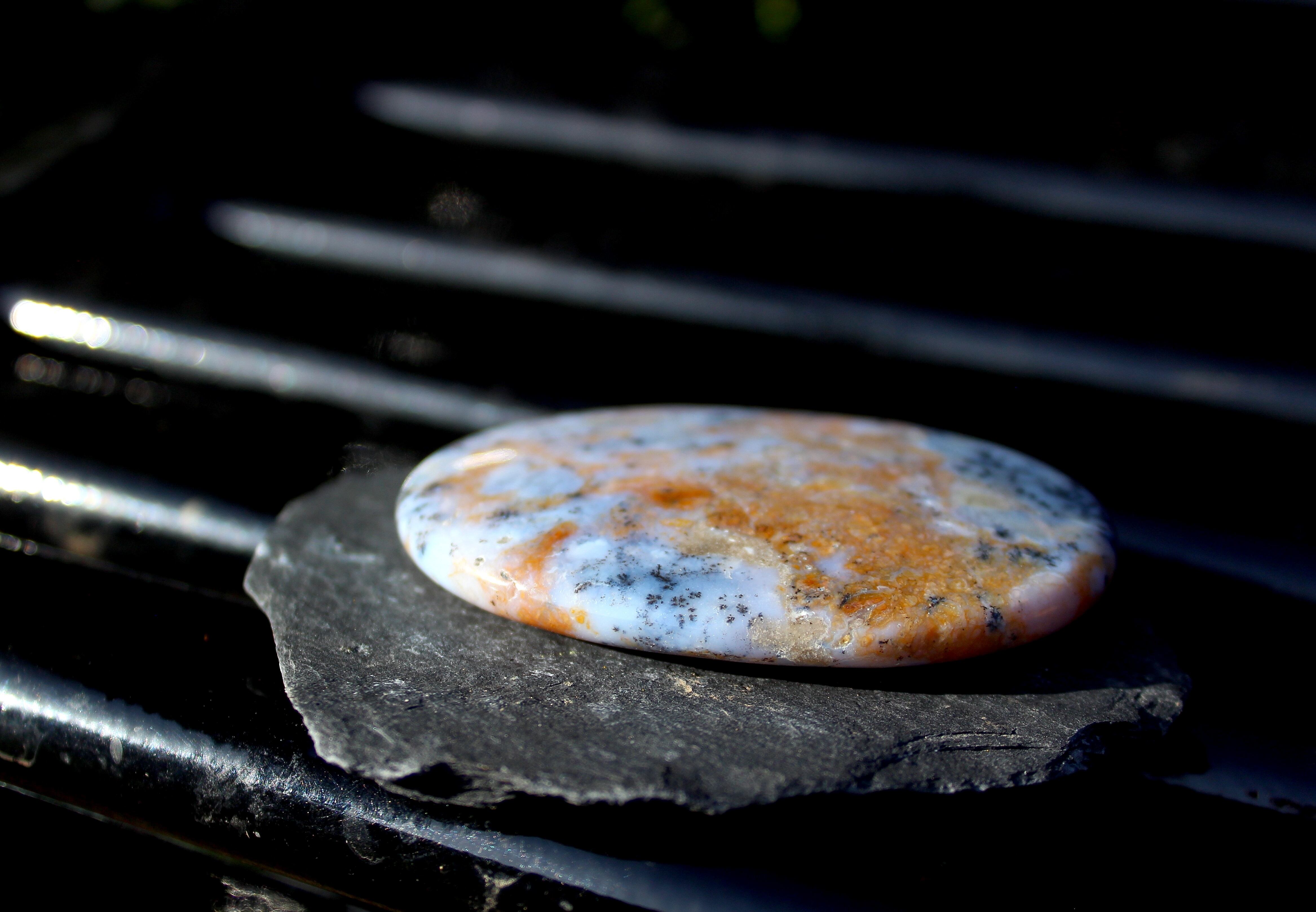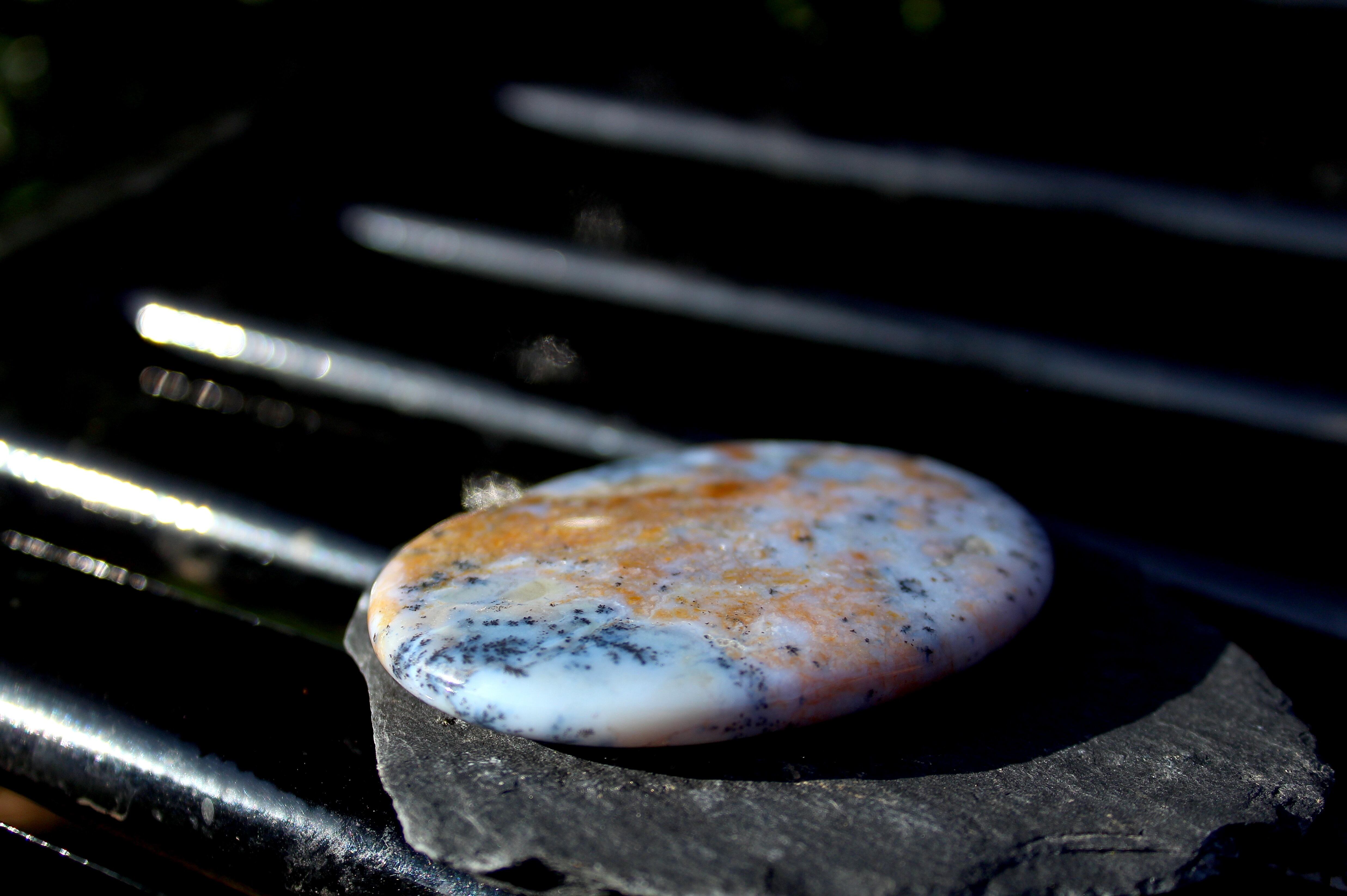 白、黒、茶色のミックスが、なんとも神秘的でなパームストーンです。