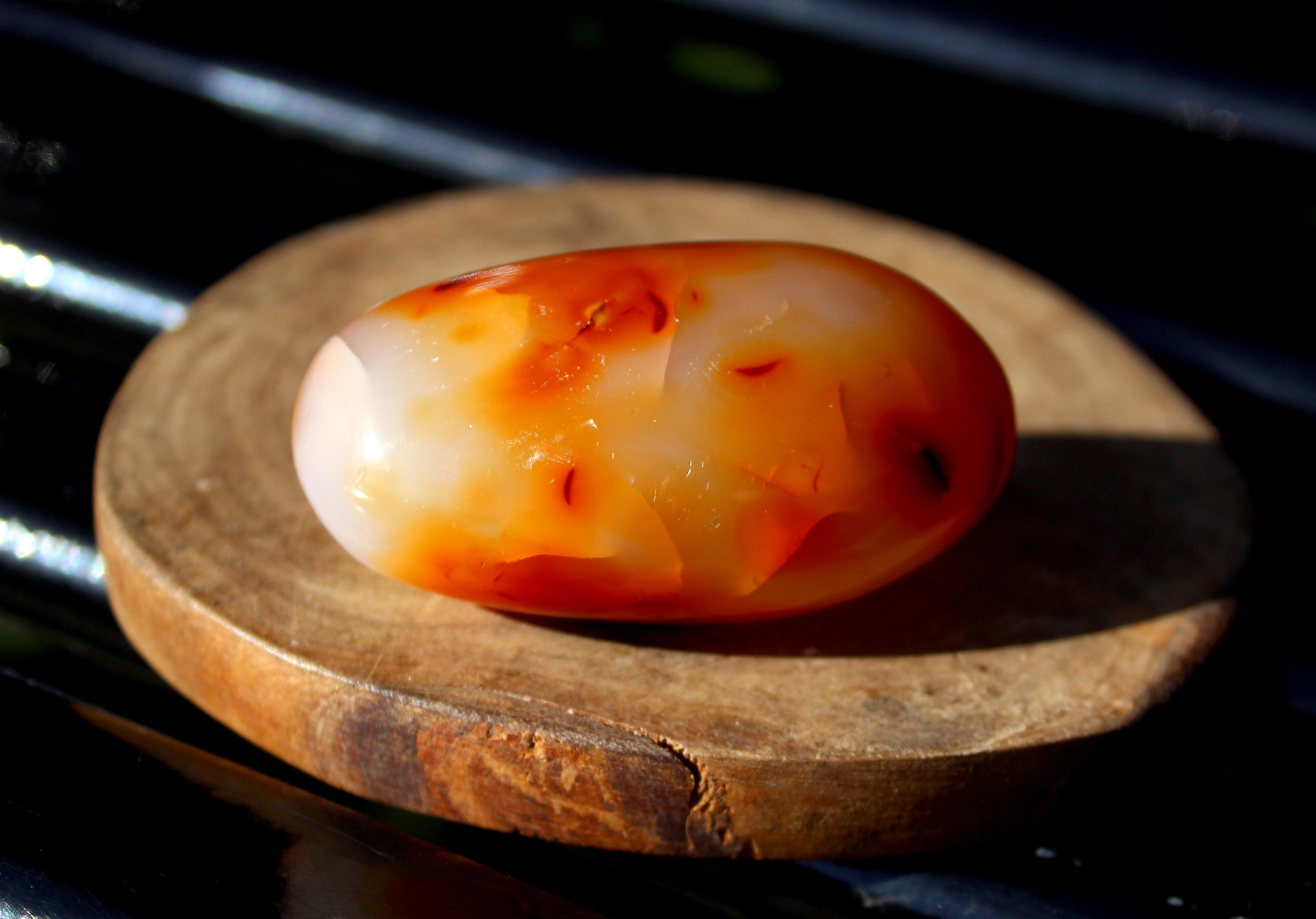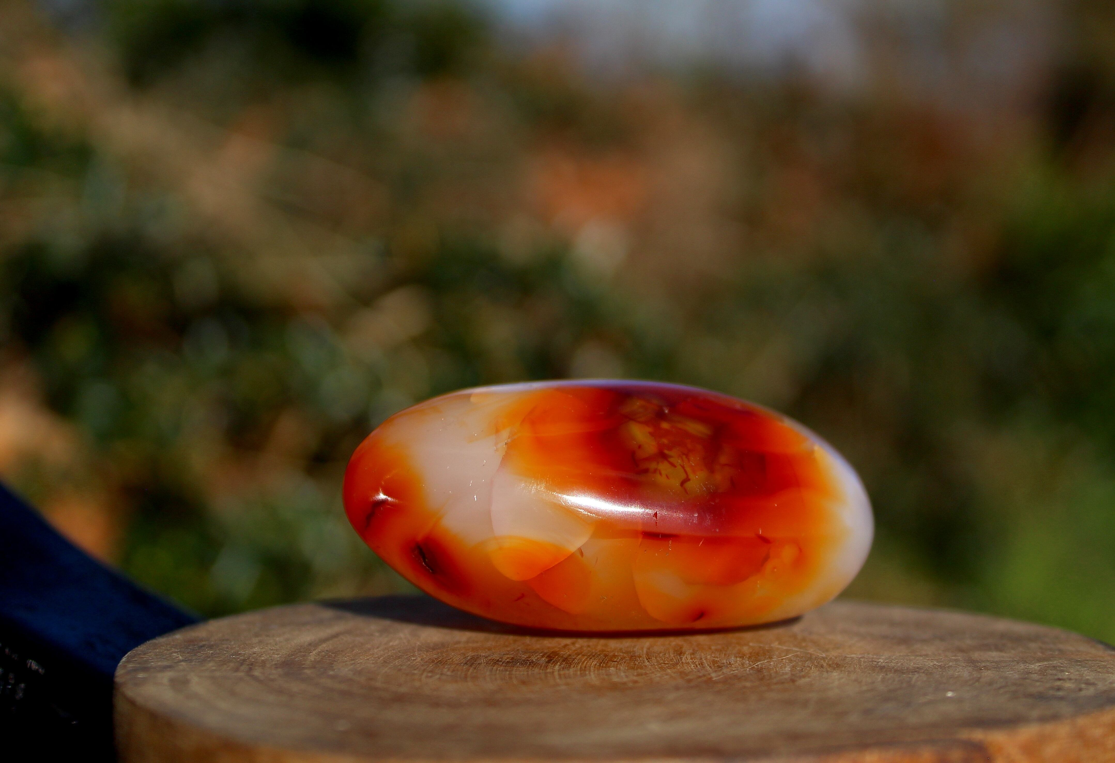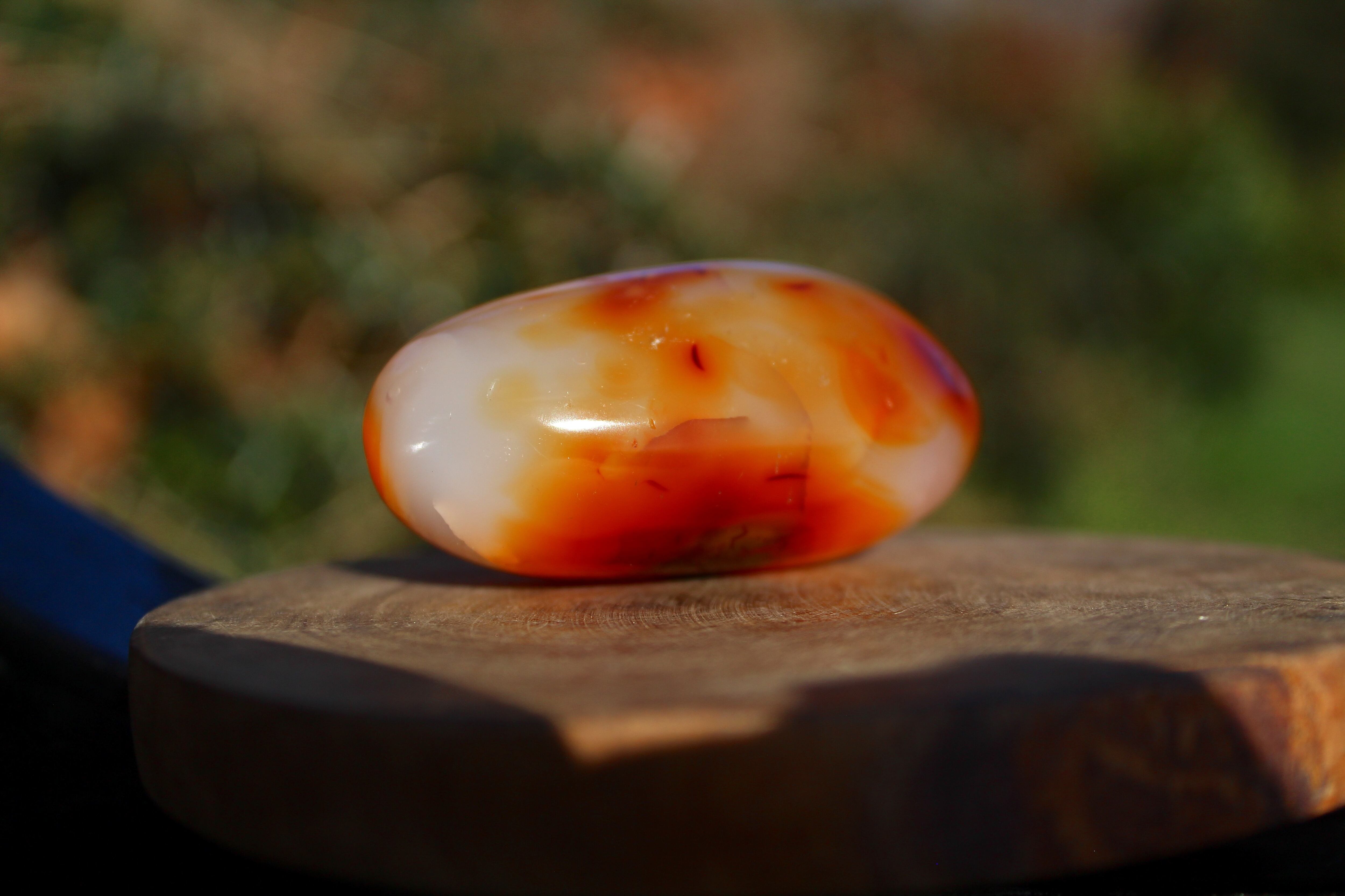 オレンジ、赤、白の色合いがとても美しい、大きめなカーネリアンのパームストーンです。