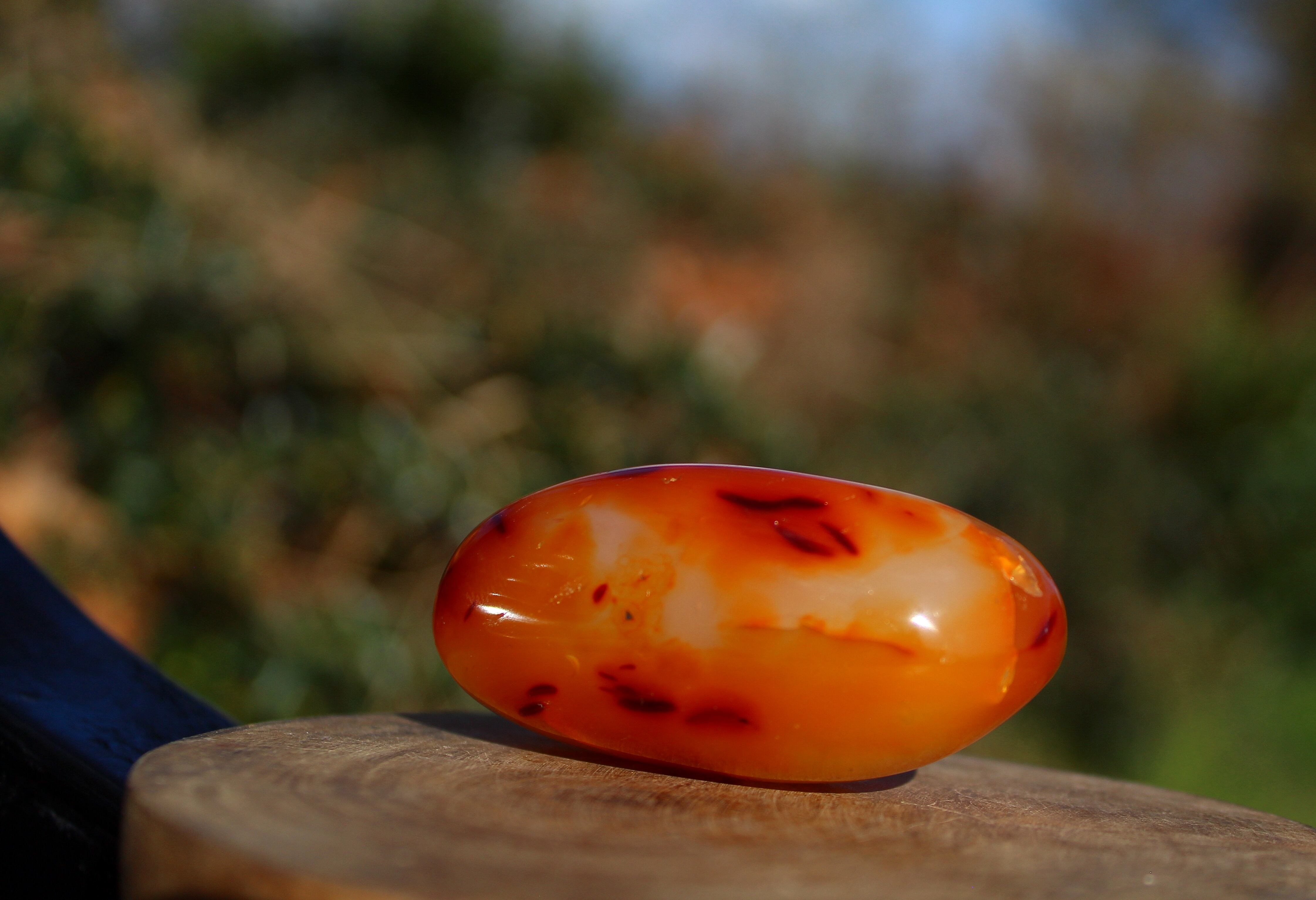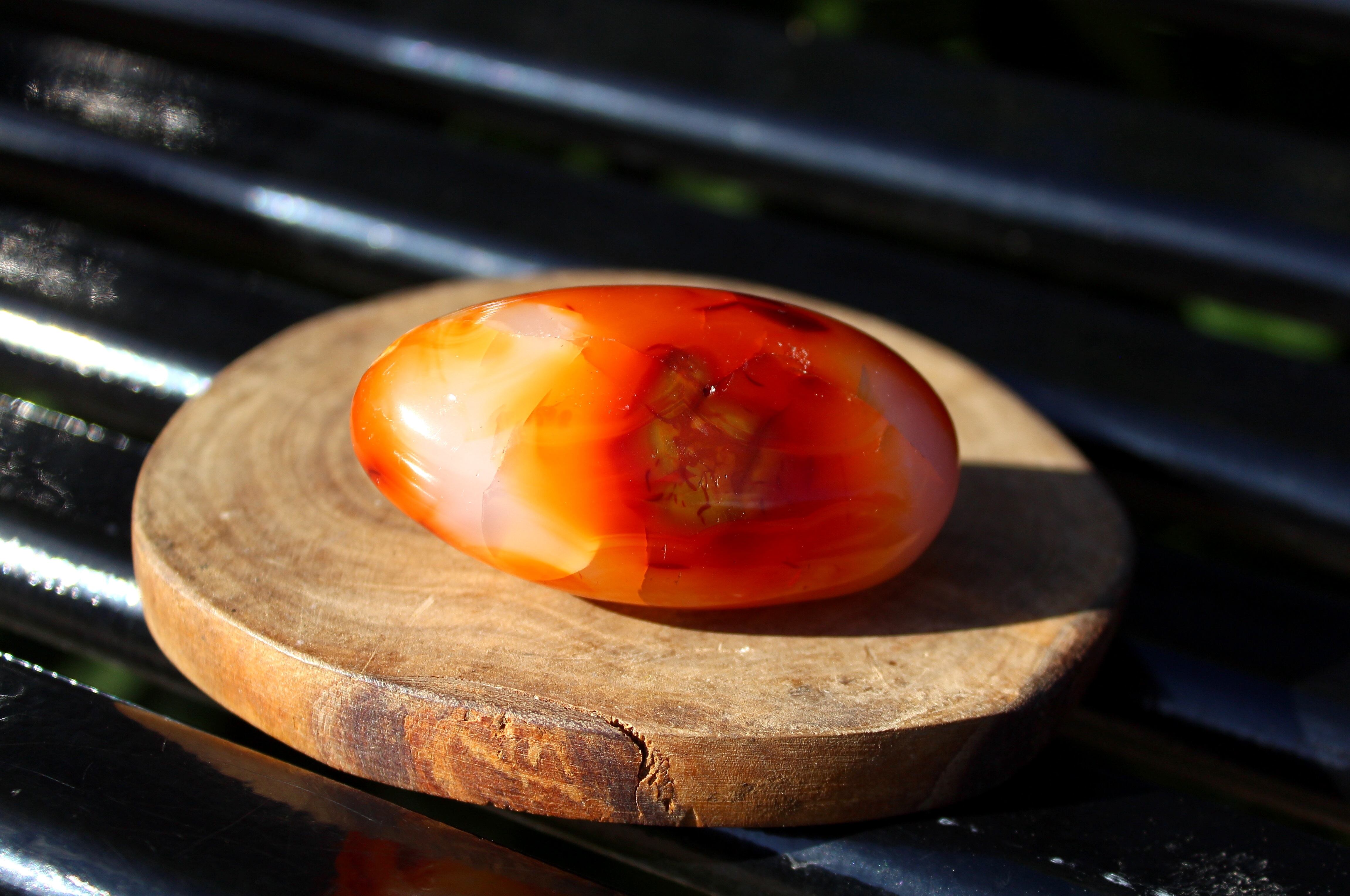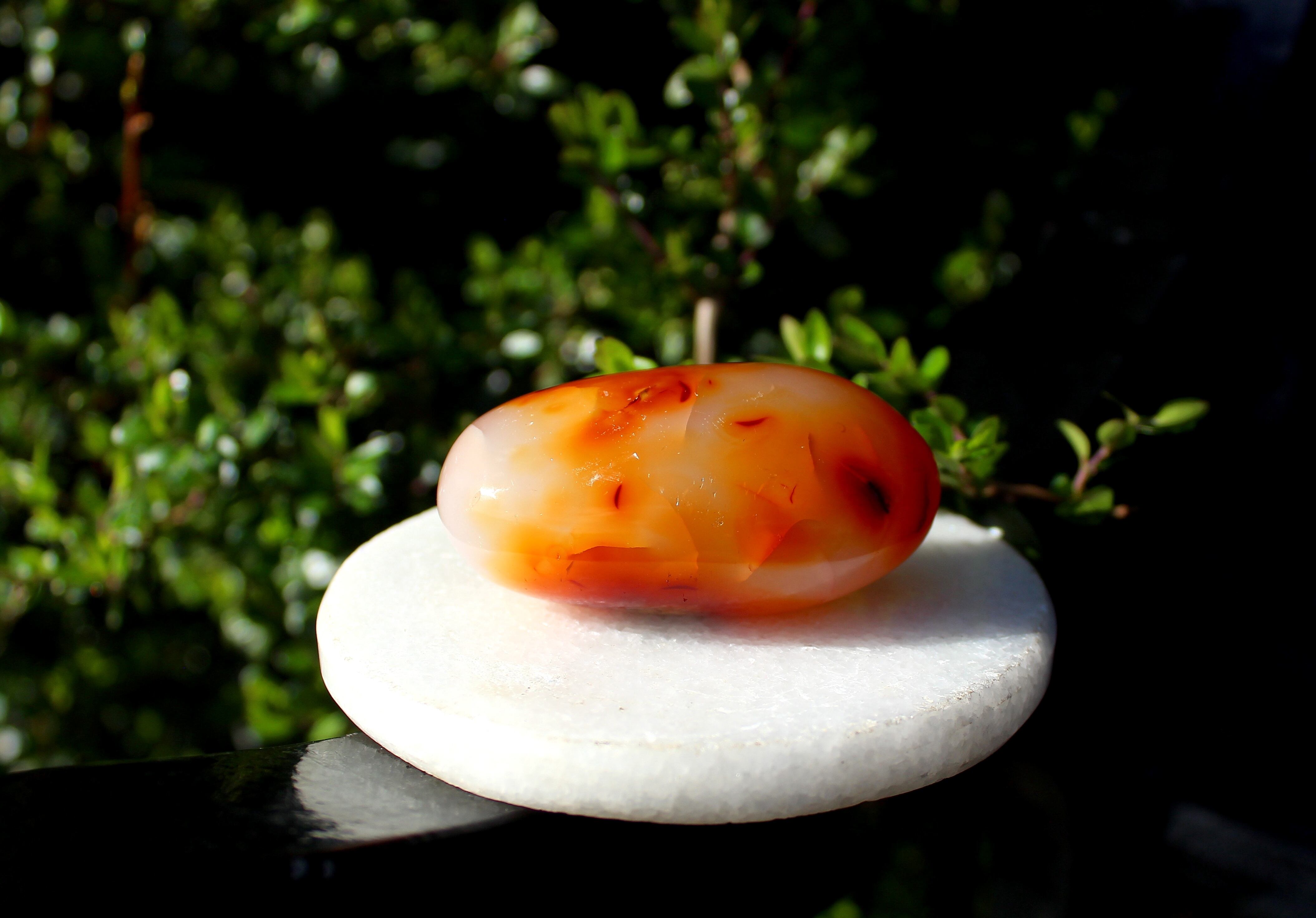 オレンジ、赤、白の色合いがとても美しい、大きめなカーネリアンのパームストーンです。