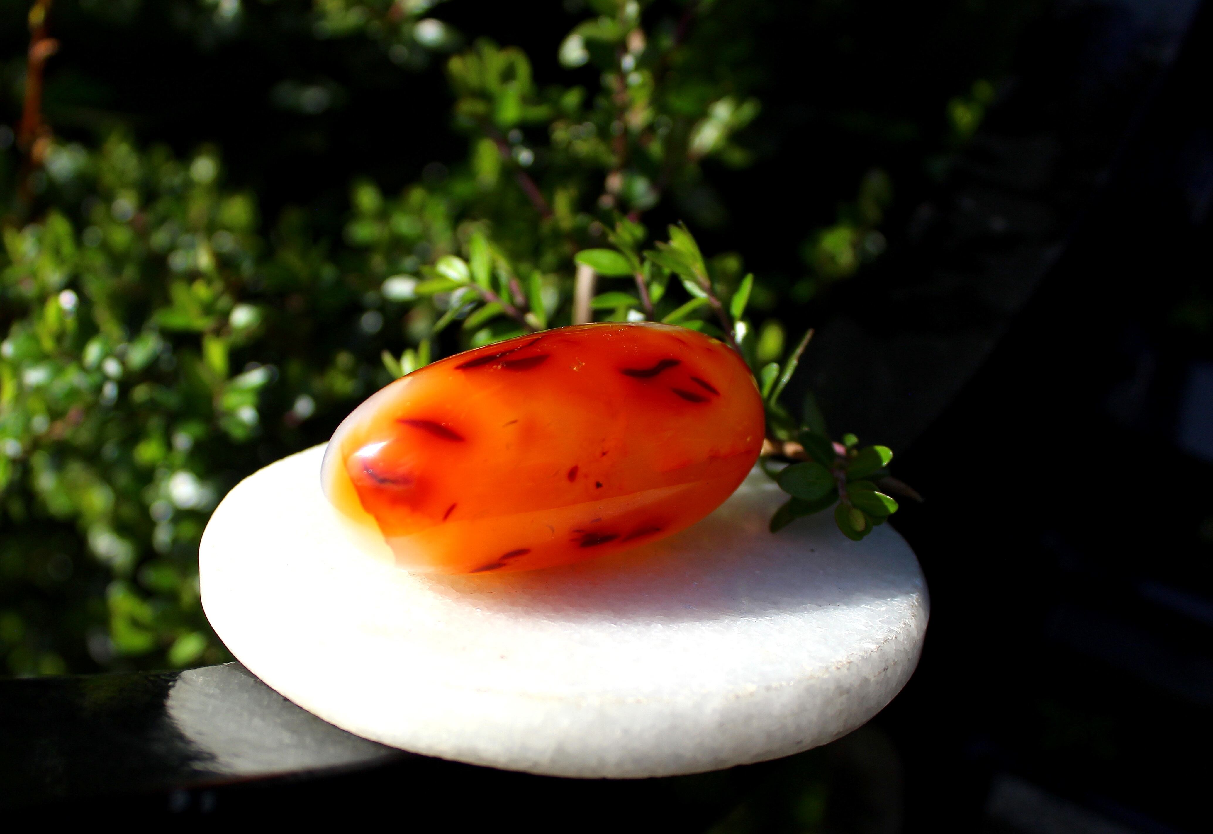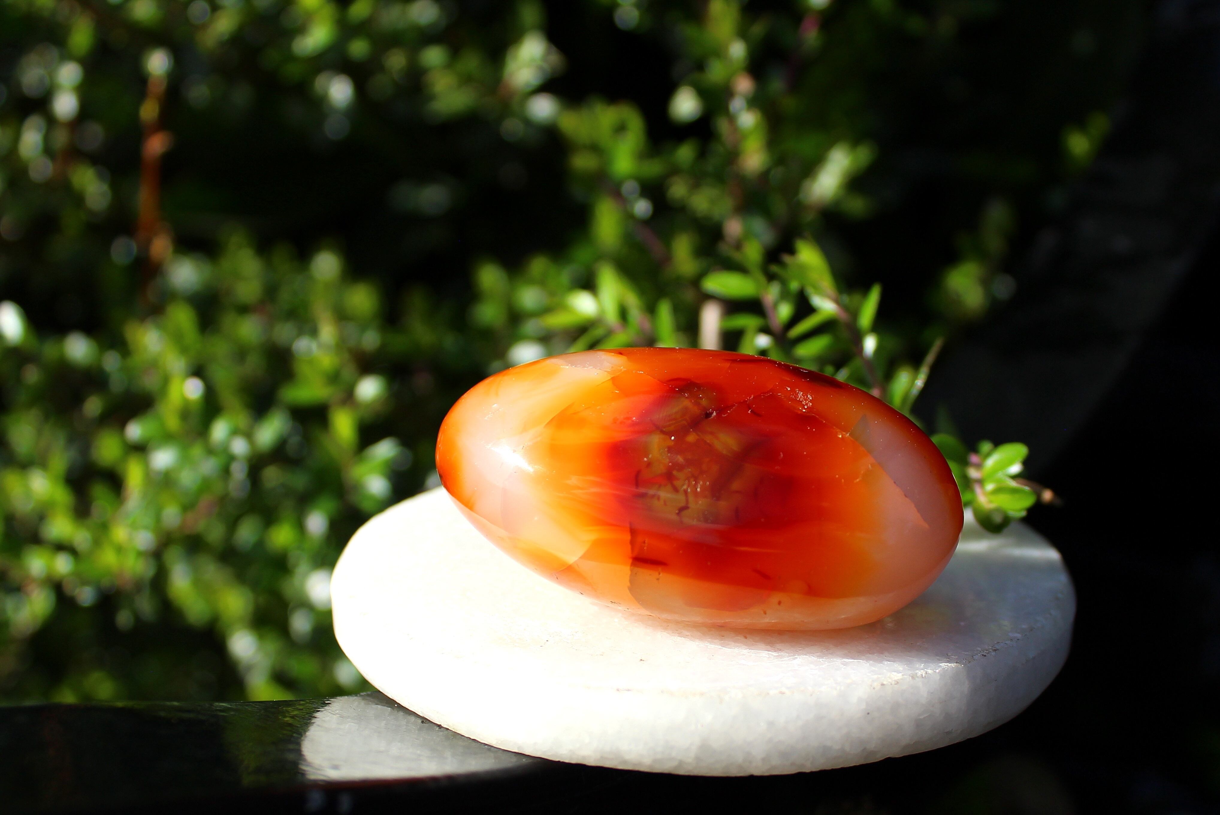 カーネリアンは、力強さと勇気を与えるとされ、真実を見分けて自分自身の力を充分に発揮することが出来るように助けてくれます。与えられた仕事を成功に導く力があるとされています。