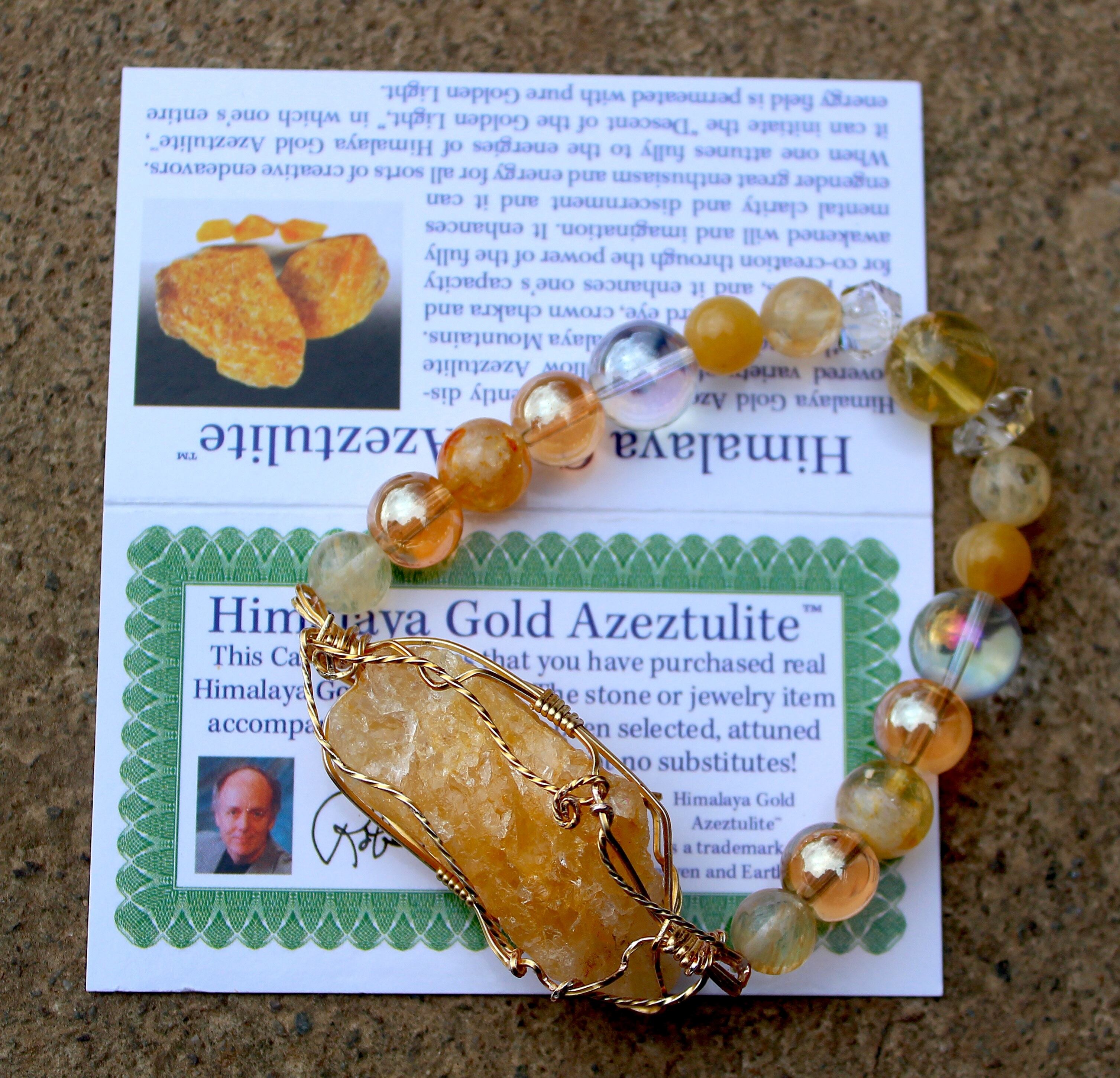 ヒマラヤ・ゴールド・アゼツライトに完全に波長を合わせると、この石は、純粋な金色の光を、その人のエネルギー・フィールド全体に浸透させ、「ゴールデン・ライトの降下」を生み出すことが出来ます。