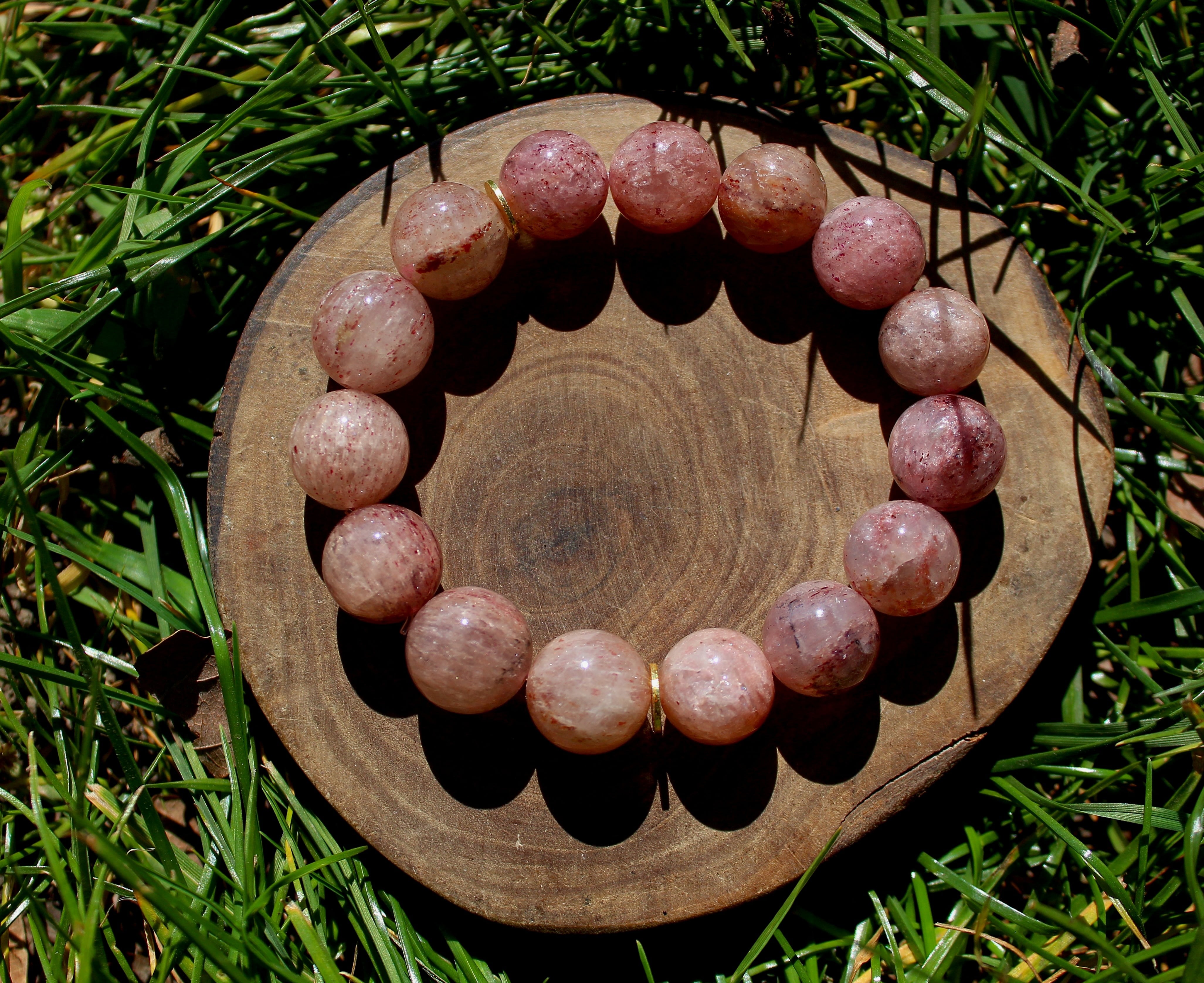 非常に大きくて、レピドクロサイトの結晶が美しい大玉のブレスレットです。
