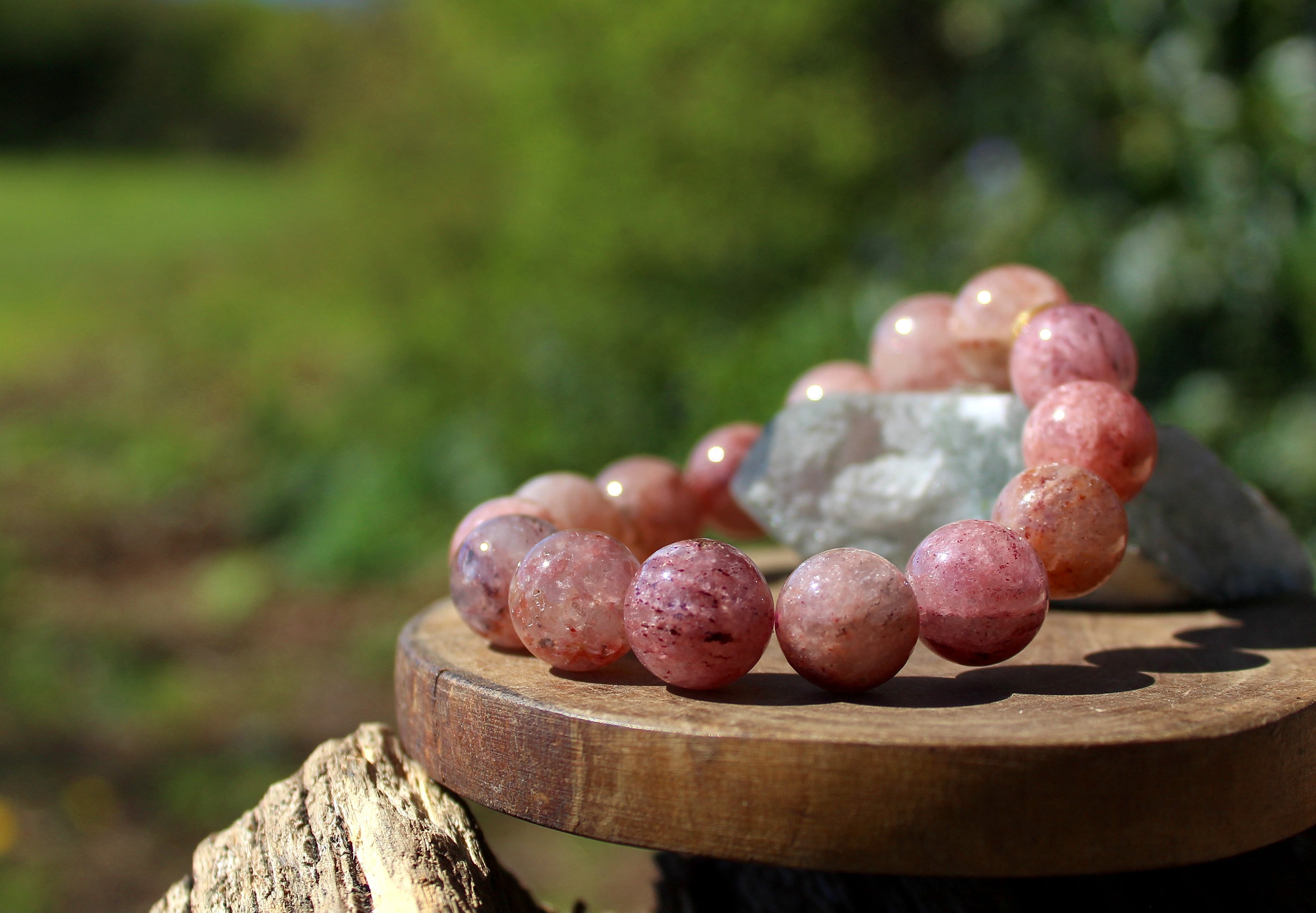 ストロベリークォーツは、このレピドクロサイトや、針状のゲーサイト(針鉄鉱)などが内包された水晶のことです。