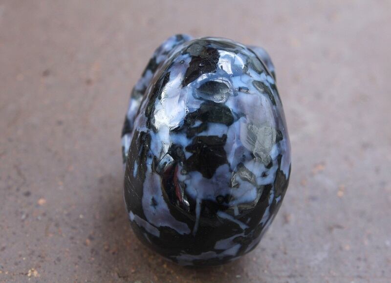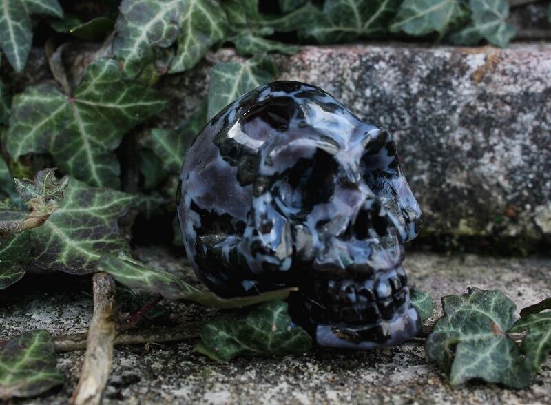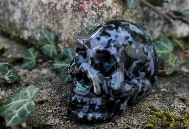 ミスティックマーリナイトで作られたスカルです。この石で作られたスカルは非常に珍しいです。