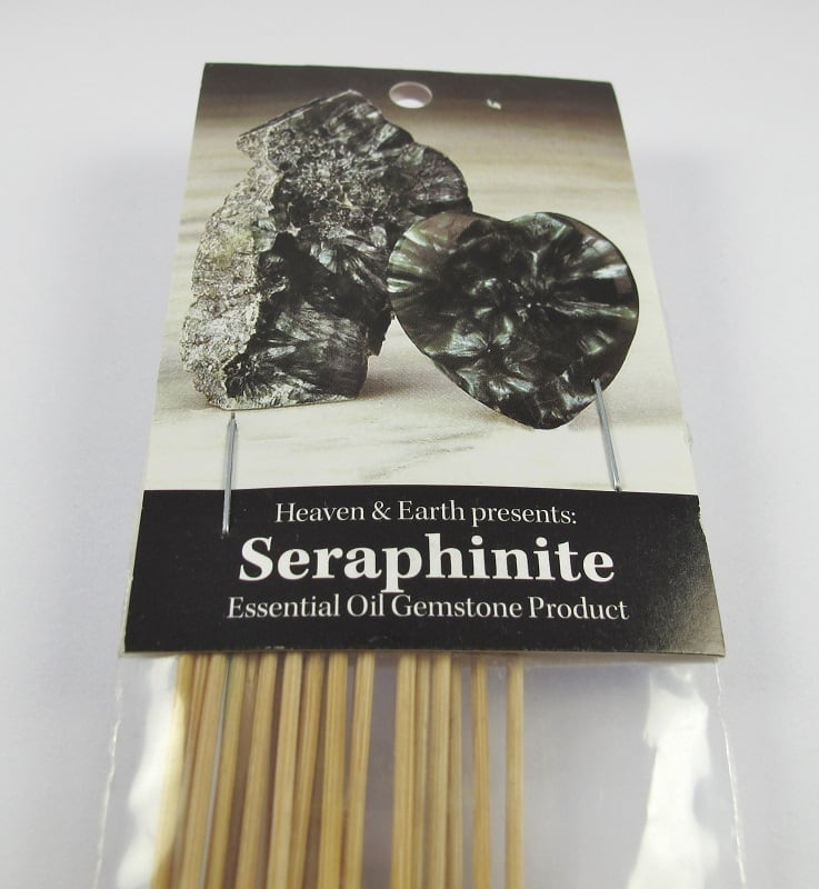 このインセンスには、ジェムストーンエッセンシャルオイルが使われています。100%ピュアなエッセンシャルオイルにセラフィナイトの原石を浸して、石のエネルギーをオイルに転写させたものです。