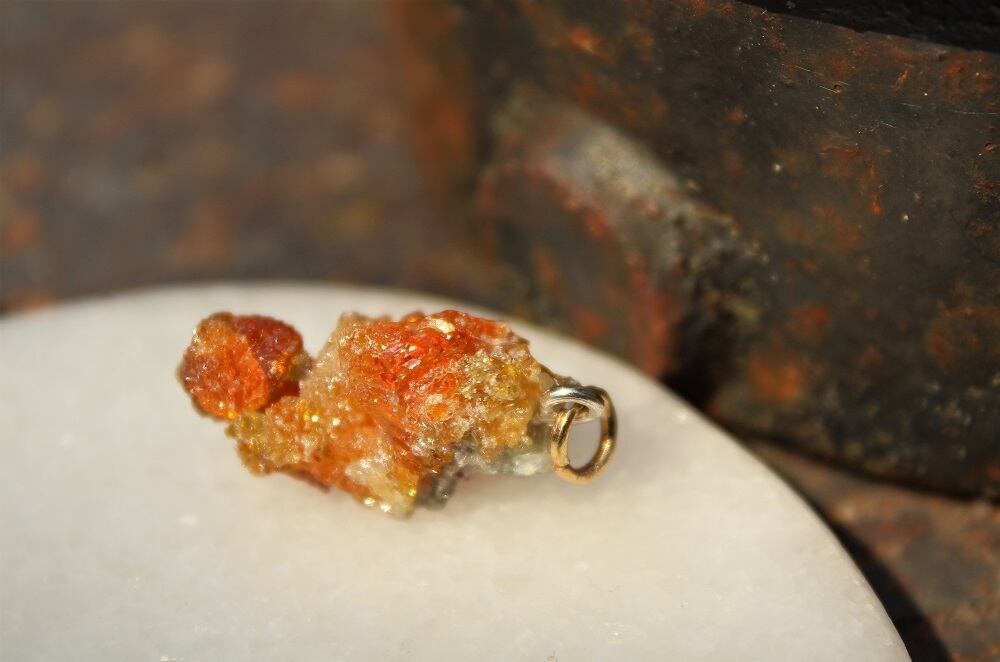 ジンカイトの、キラキラな非常に美しい原石です。ドリルでトップに穴を開けて、パーツをはめ込みました。個性的な形と、自然の美しい輝きをお楽しみください。