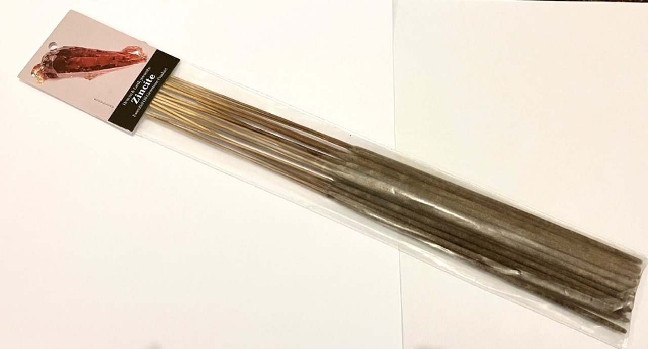 このインセンスには、ジェムストーンエッセンシャルオイルが使われています。100%ピュアなエッセンシャルオイルにジンカイトの原石を浸して、石のエネルギーをオイルに転写させたものです。